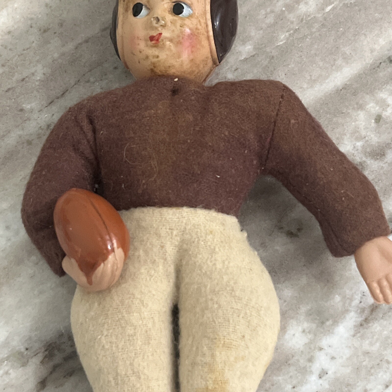 • Vintage Celluloid Stuffed Football Player Doll 1930s Made in Japan