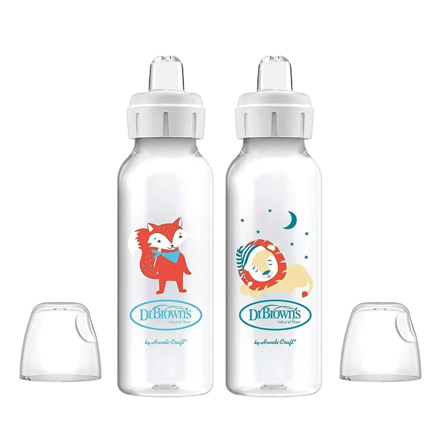 Dr. Brown's Milestones Narrow Sippy Bottle, 100 Silicone Soft Sippy Spout, Fox