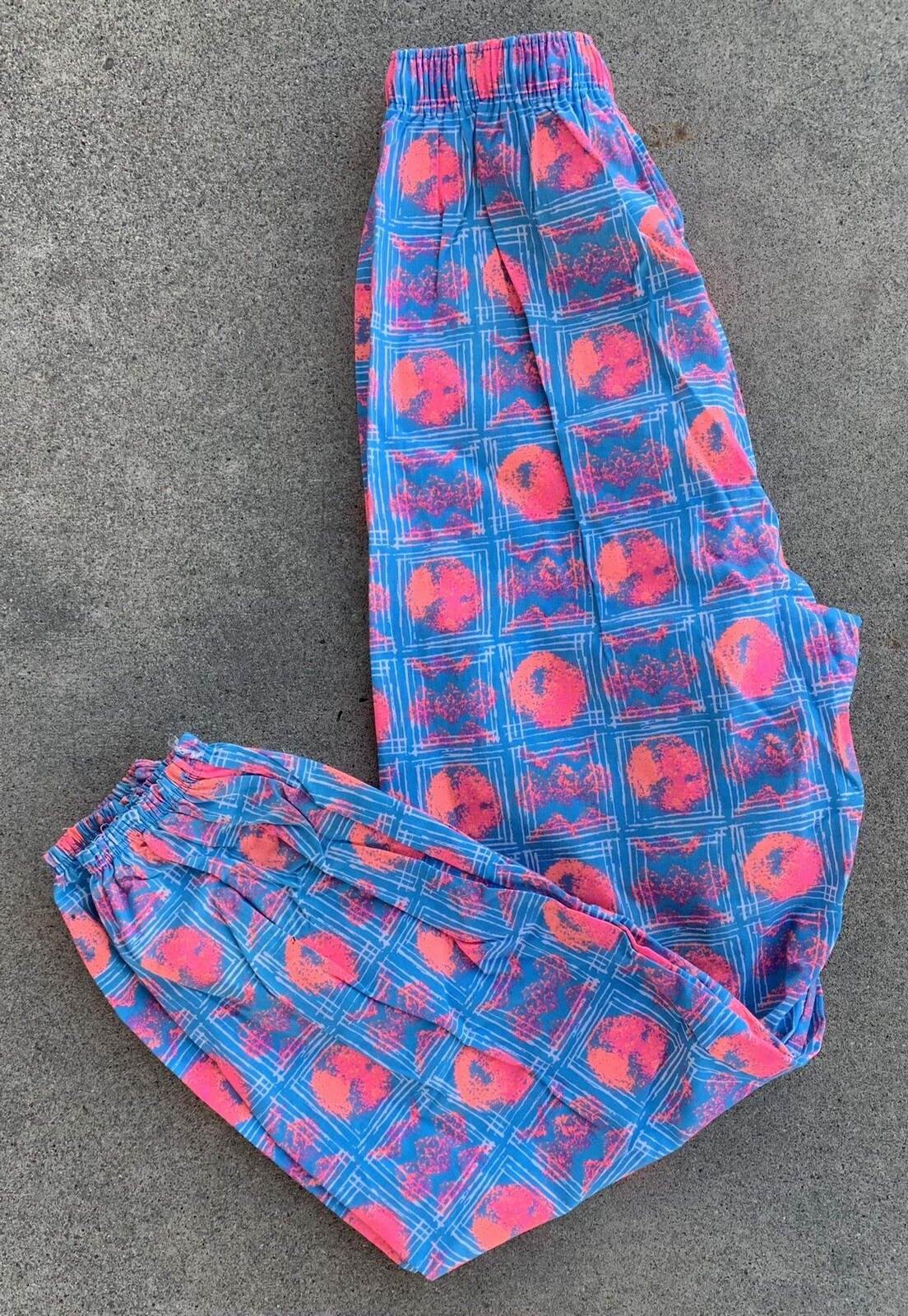 vintage Connectors muscle pants surf beach skate neon geometric 80s 90s size L