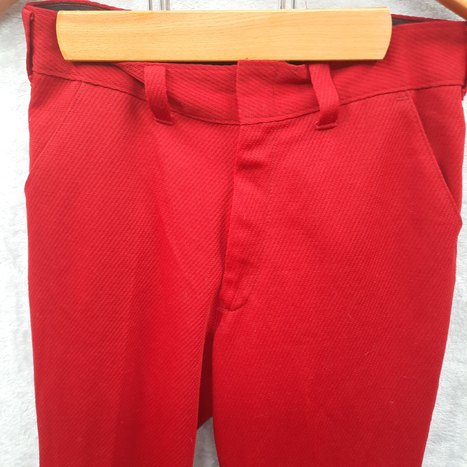 Vintage 1970s Red Corduroy Bellbottom Cotton Pants Cuffed No Tag 29 x 28