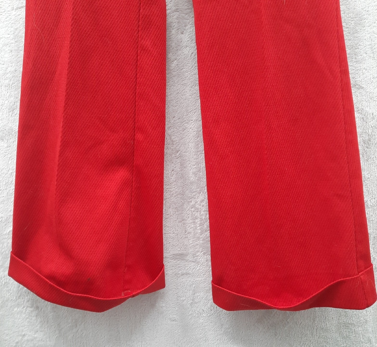 как выглядит Vintage 1970s Red Corduroy Bellbottom Cotton Pants Cuffed No Tag 29" x 28" фото