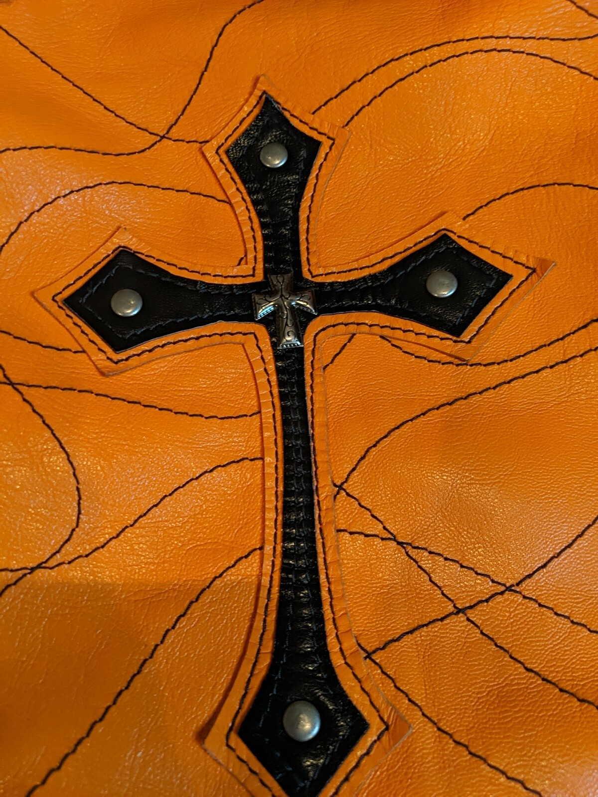 Renaissance D D Medieval Purse Celtic Cross Orange Pebbled Leather Like Tote