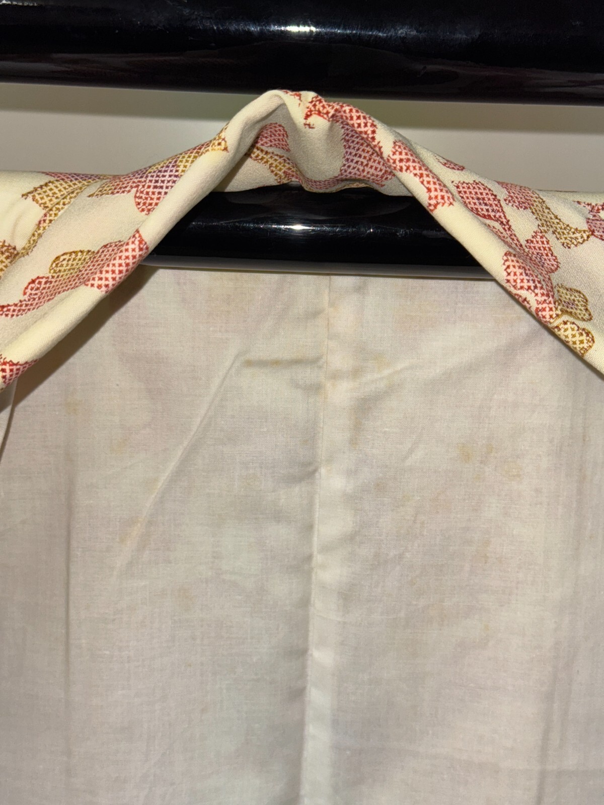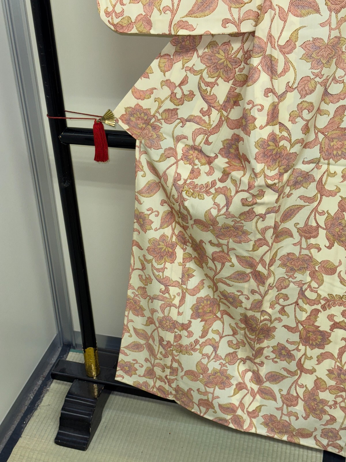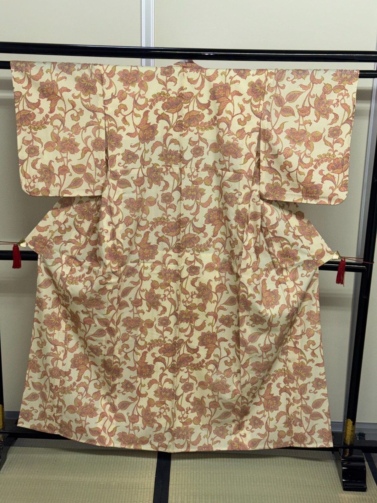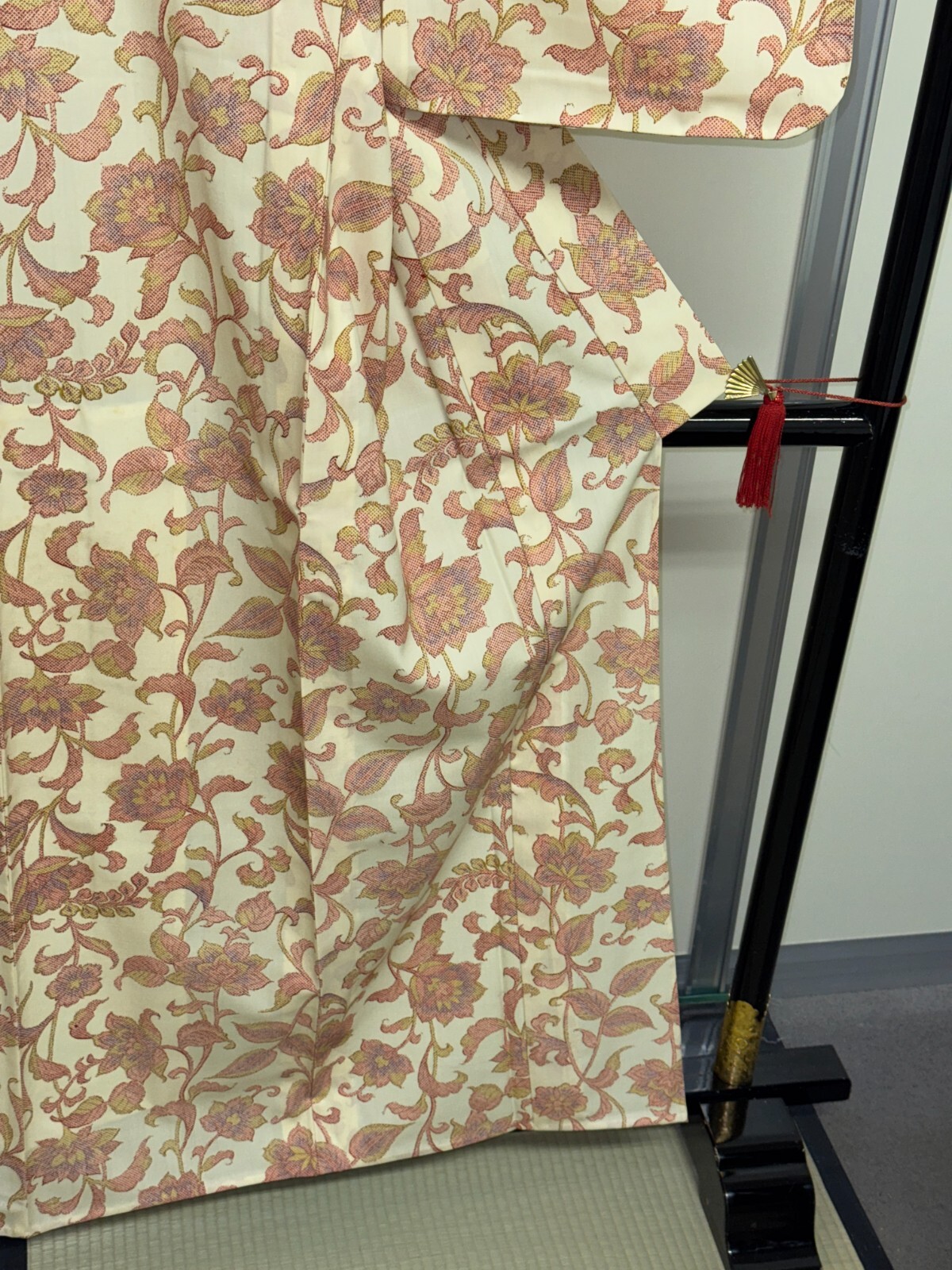 как выглядит Japanese Vintage Kimono Polyester Beige Flower Expensive Tradition Heigh 61.81in фото