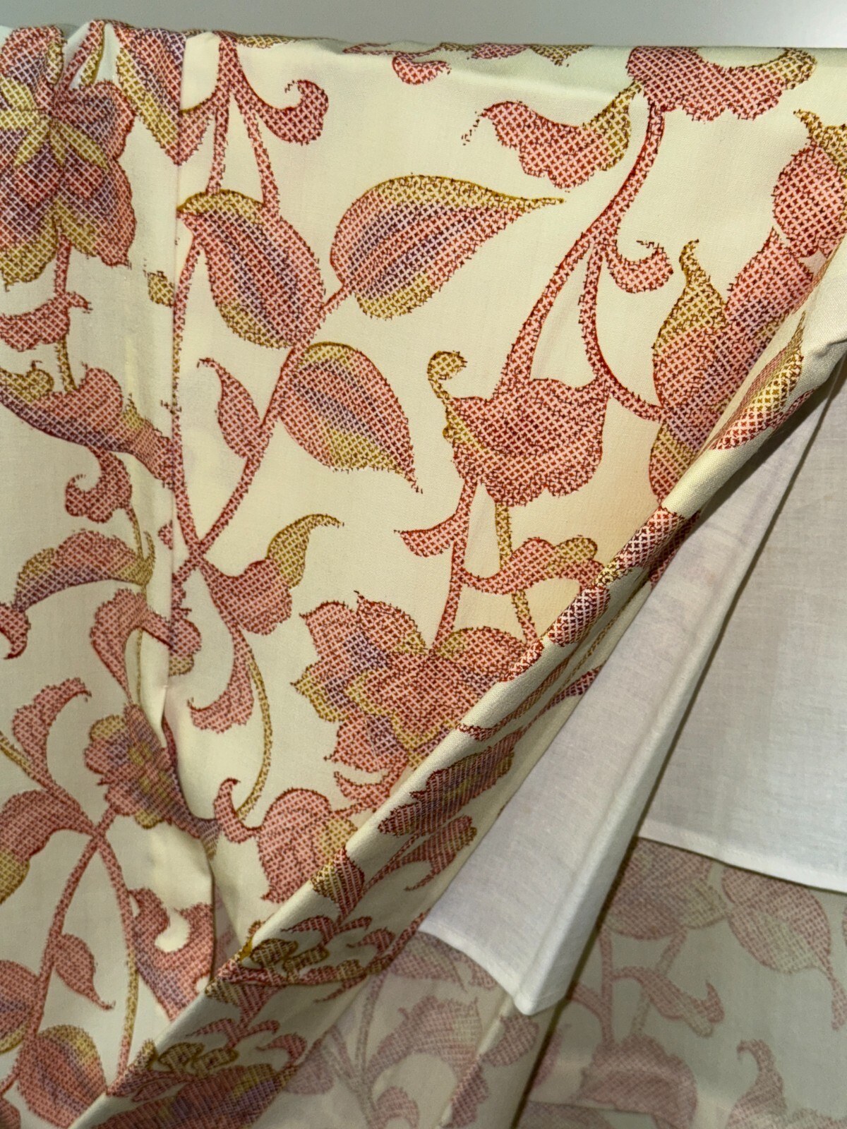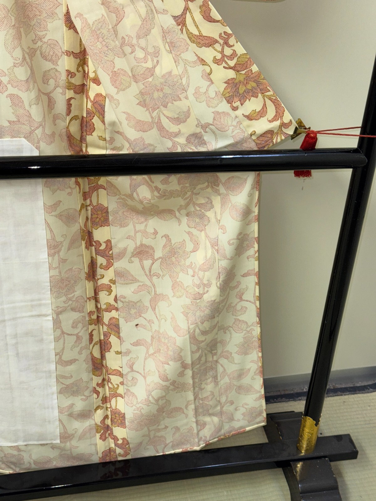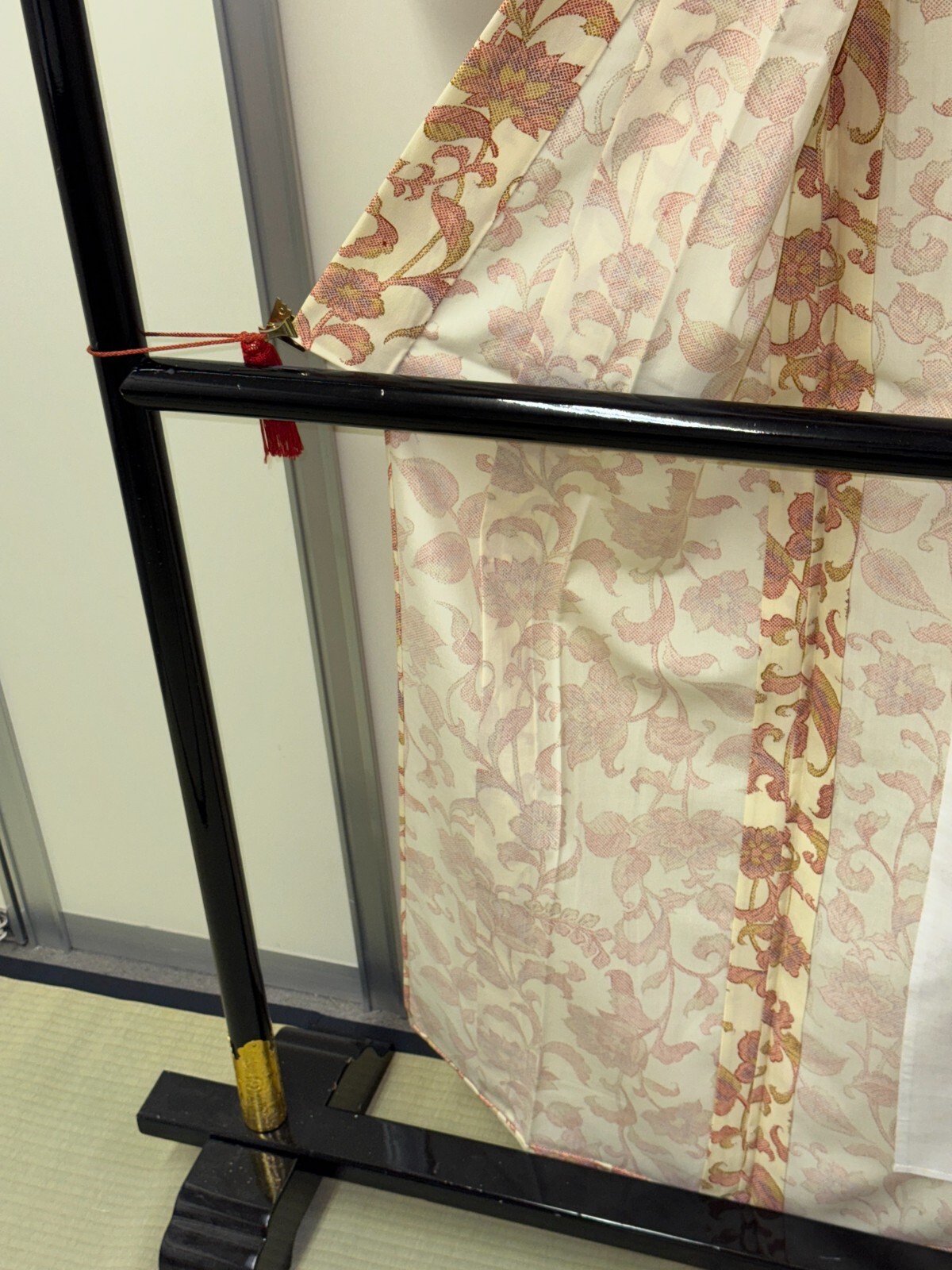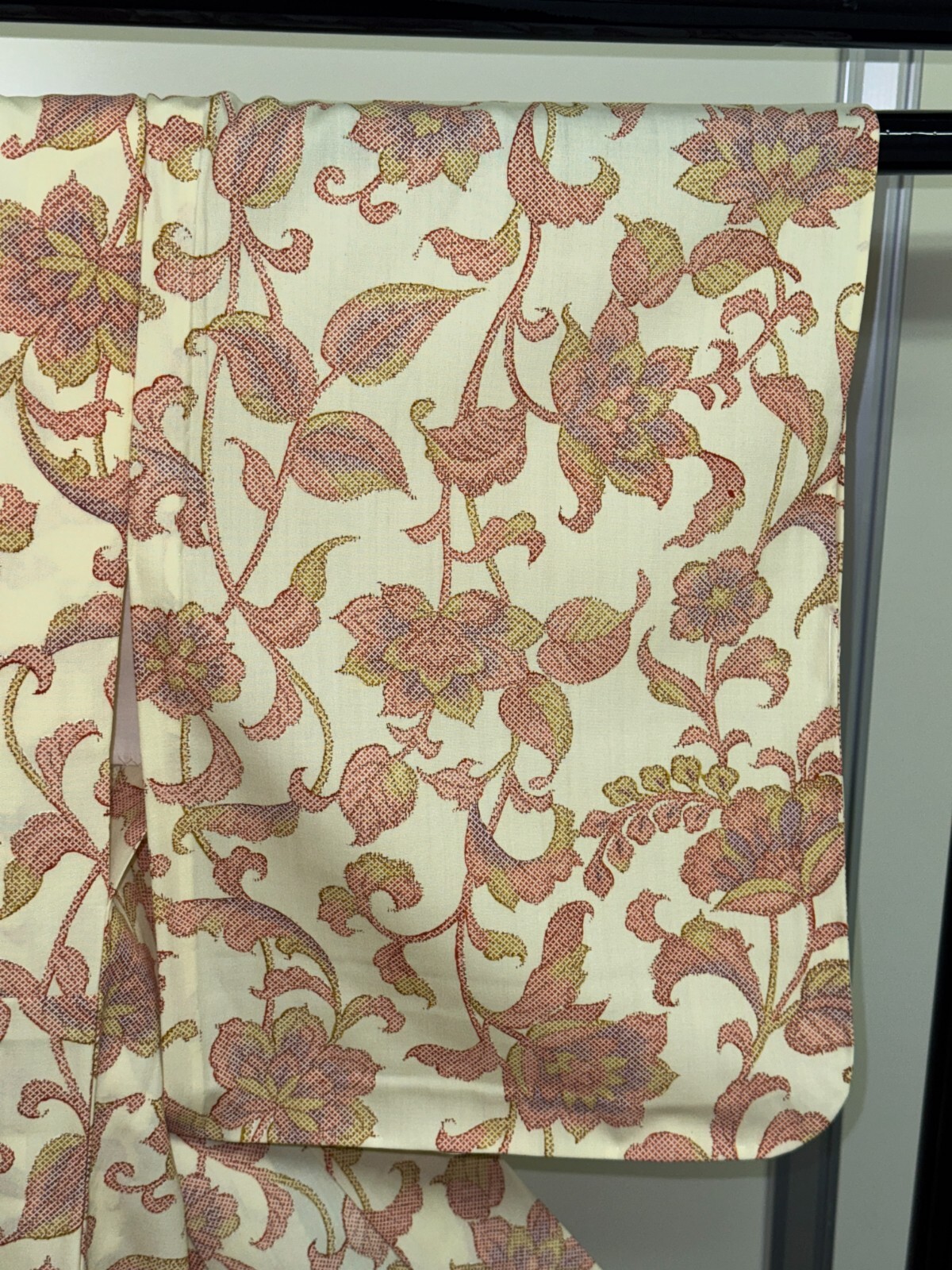 как выглядит Japanese Vintage Kimono Polyester Beige Flower Expensive Tradition Heigh 61.81in фото