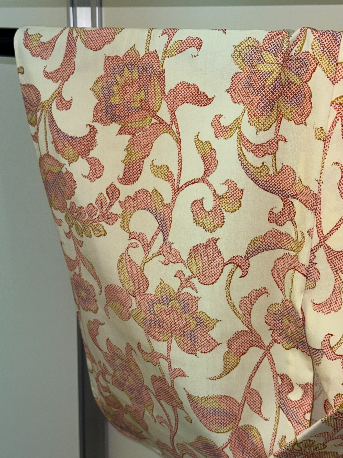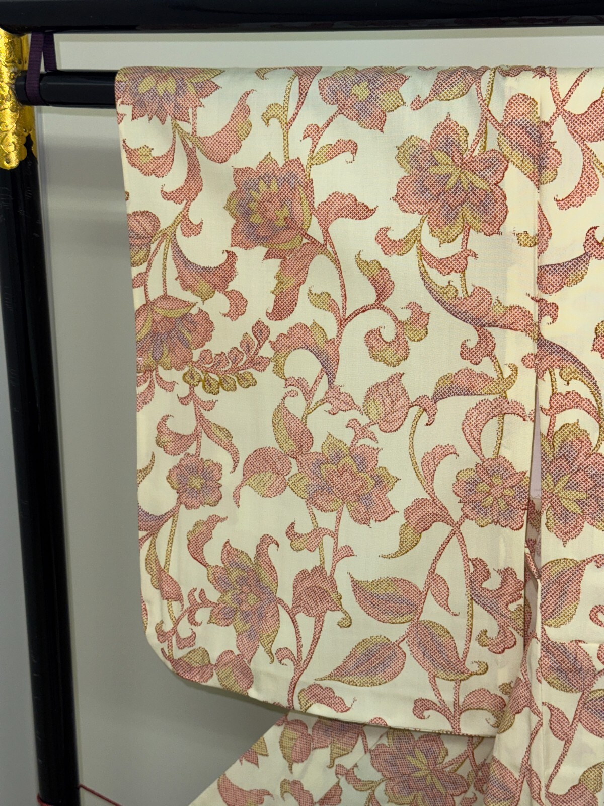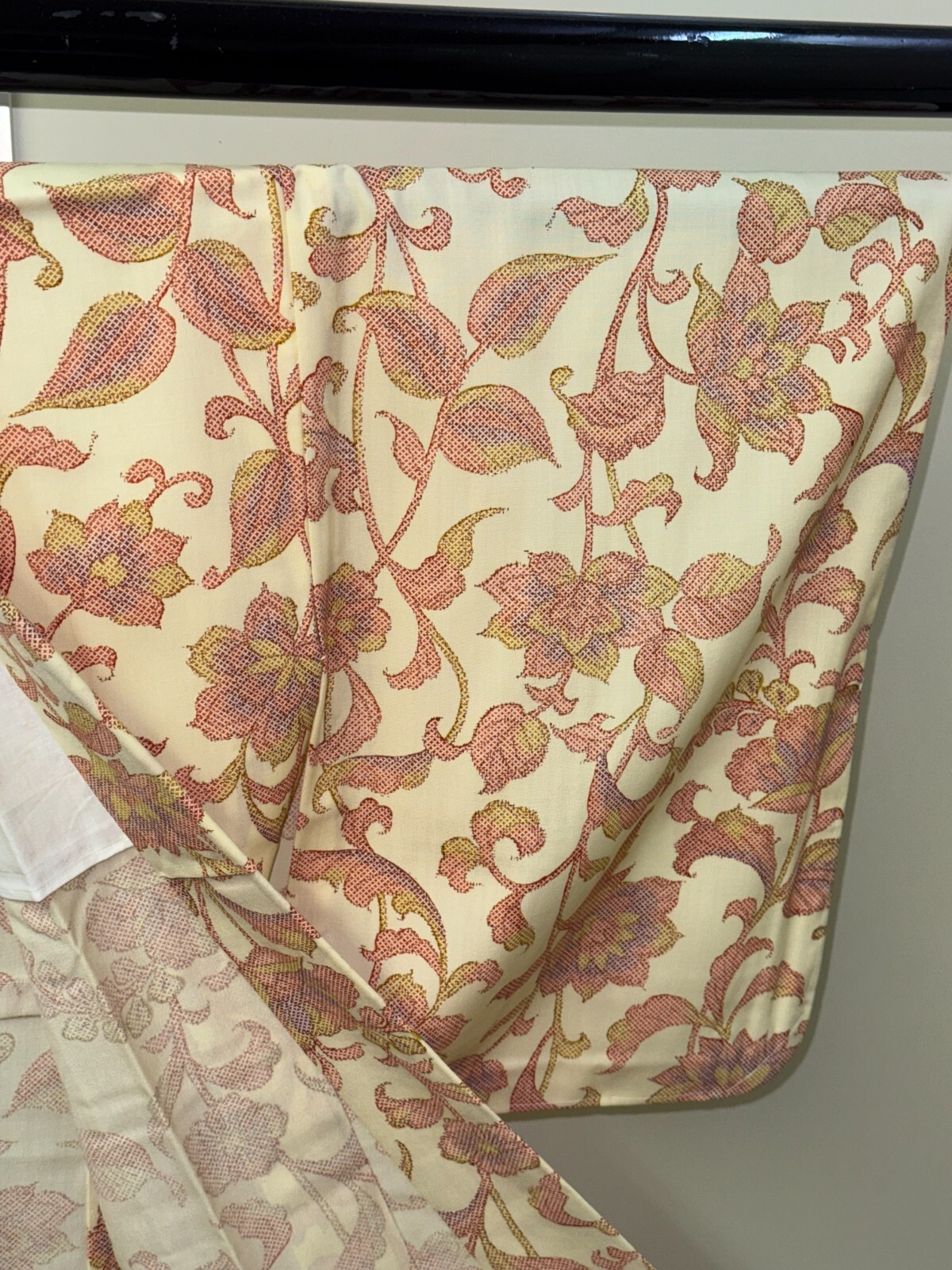 Japanese Vintage Kimono Polyester Beige Flower Expensive Tradition Heigh 61.81in