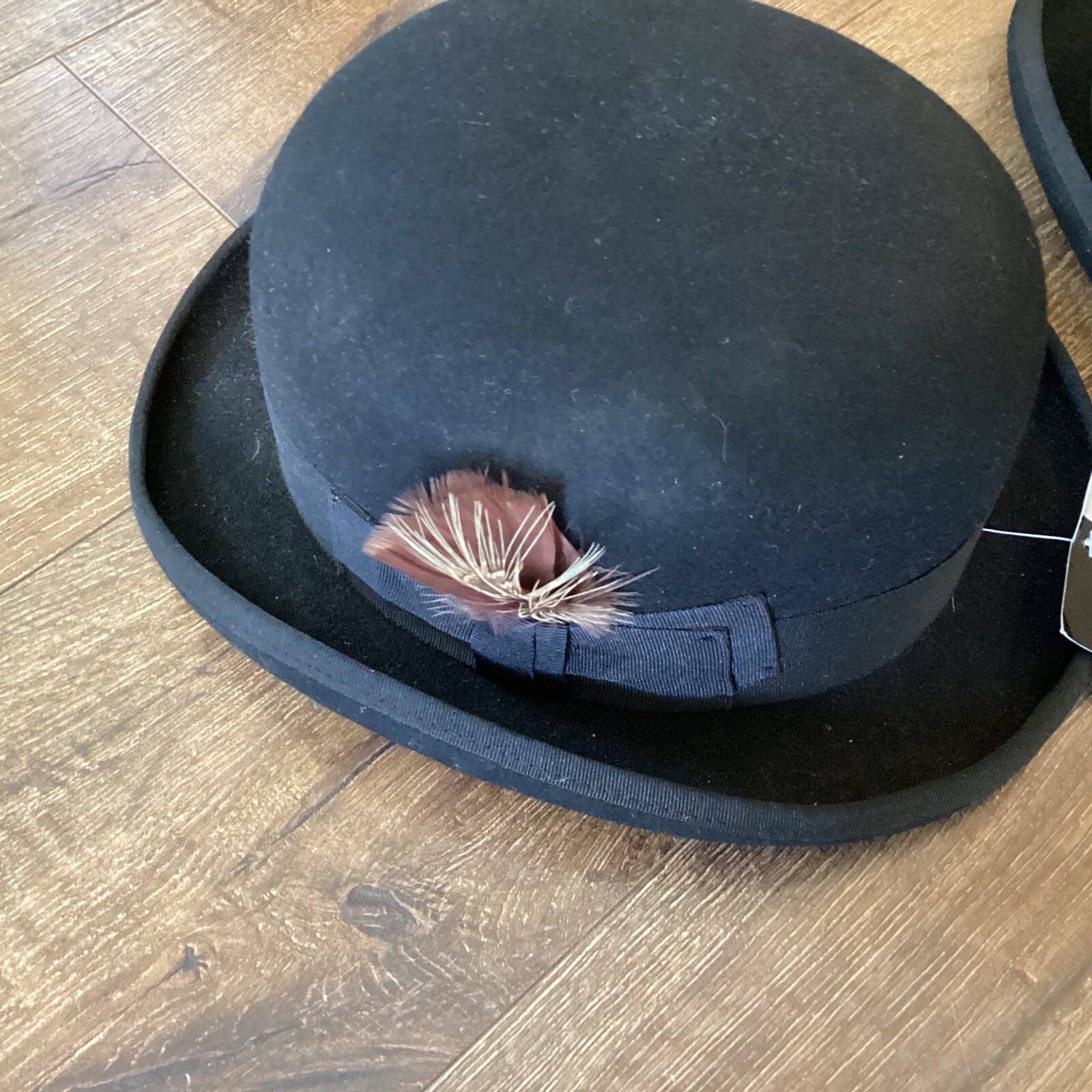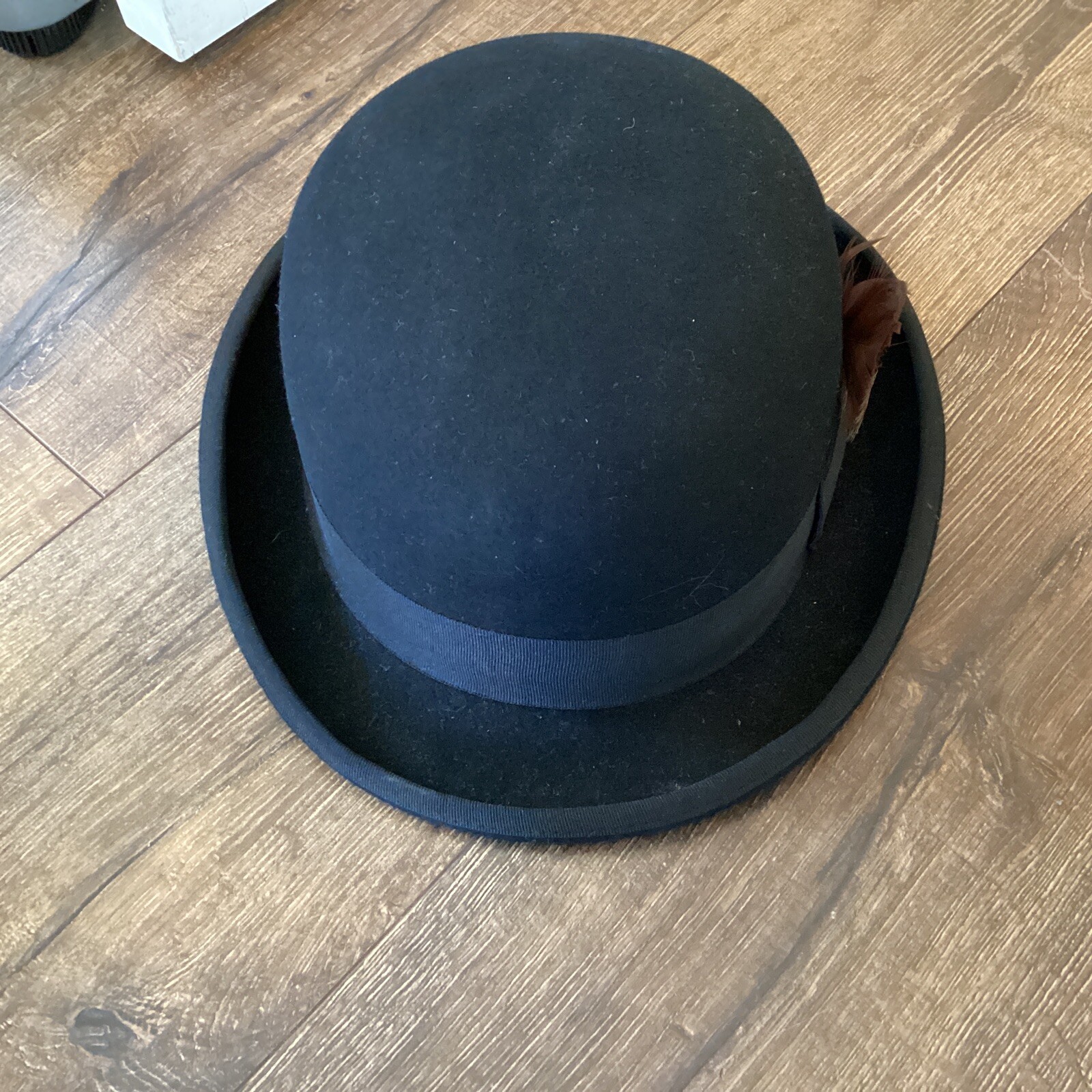 как выглядит 3 Hats In The Belfry Tammany Bowler Derby 100 Wool Hat Black Sz XL One NEW фото