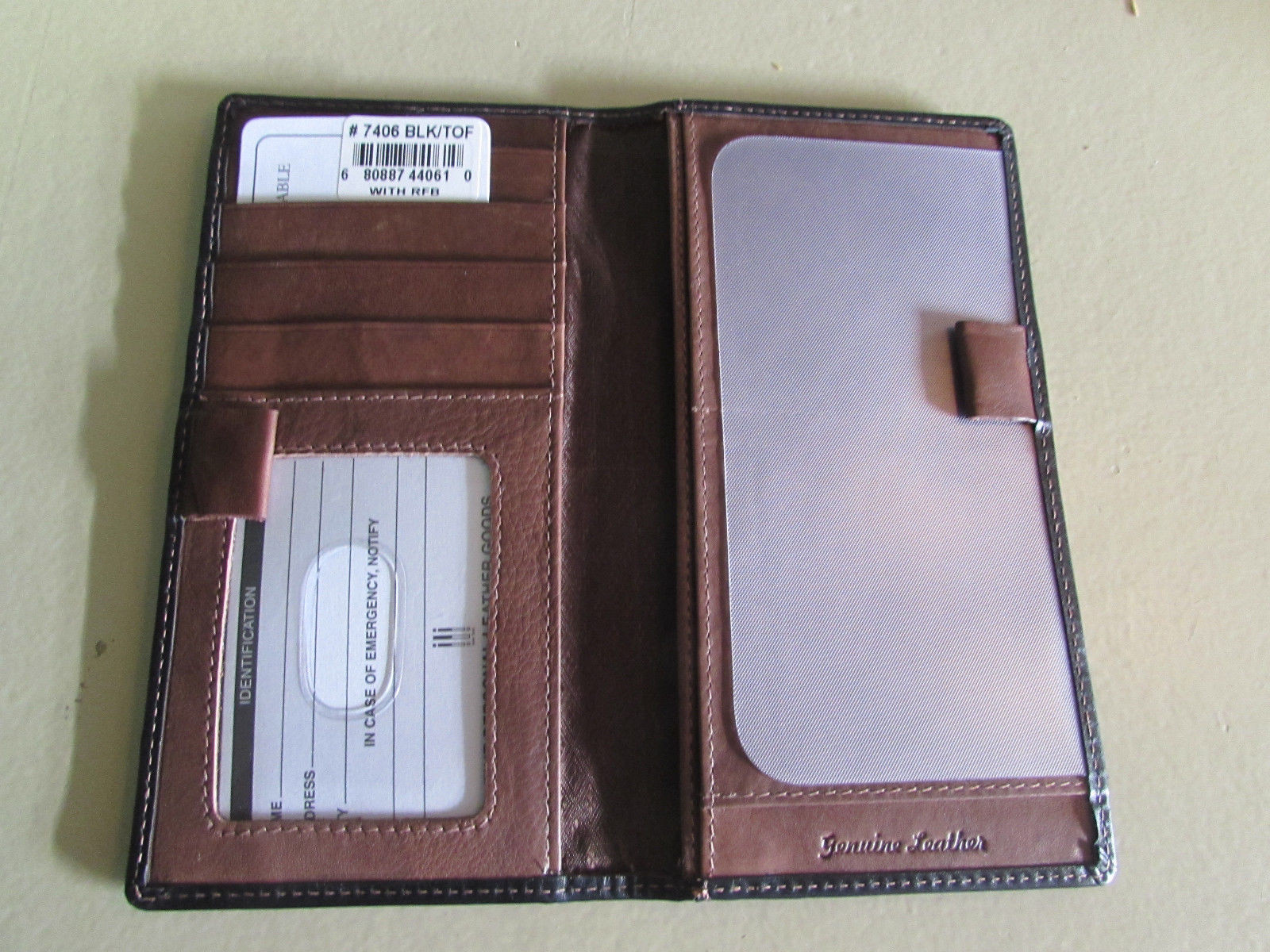 ILI Genuine Leather Checkbook Cover / RFB Card Slots / Pen Loop - BLACK TOFFEE