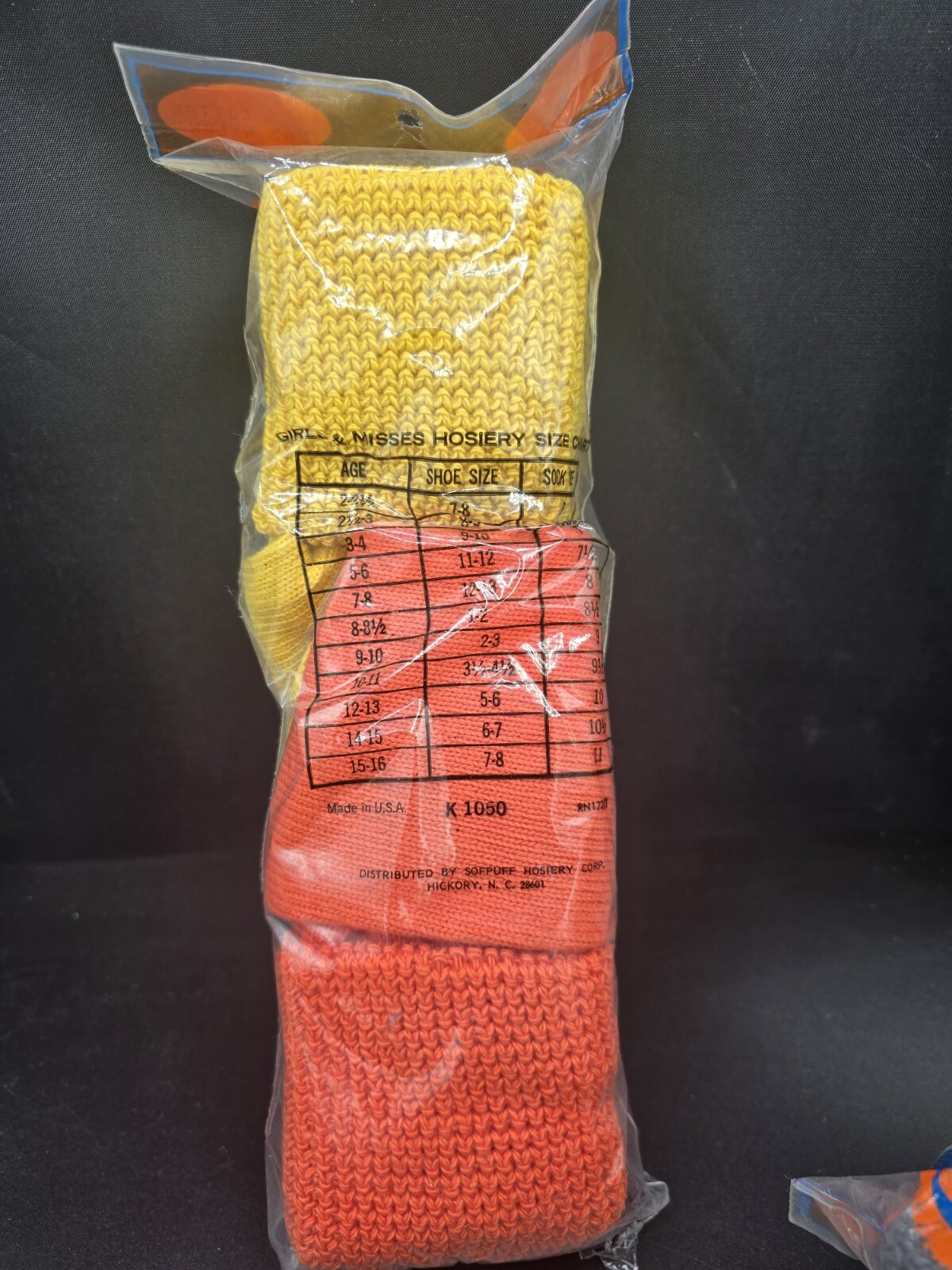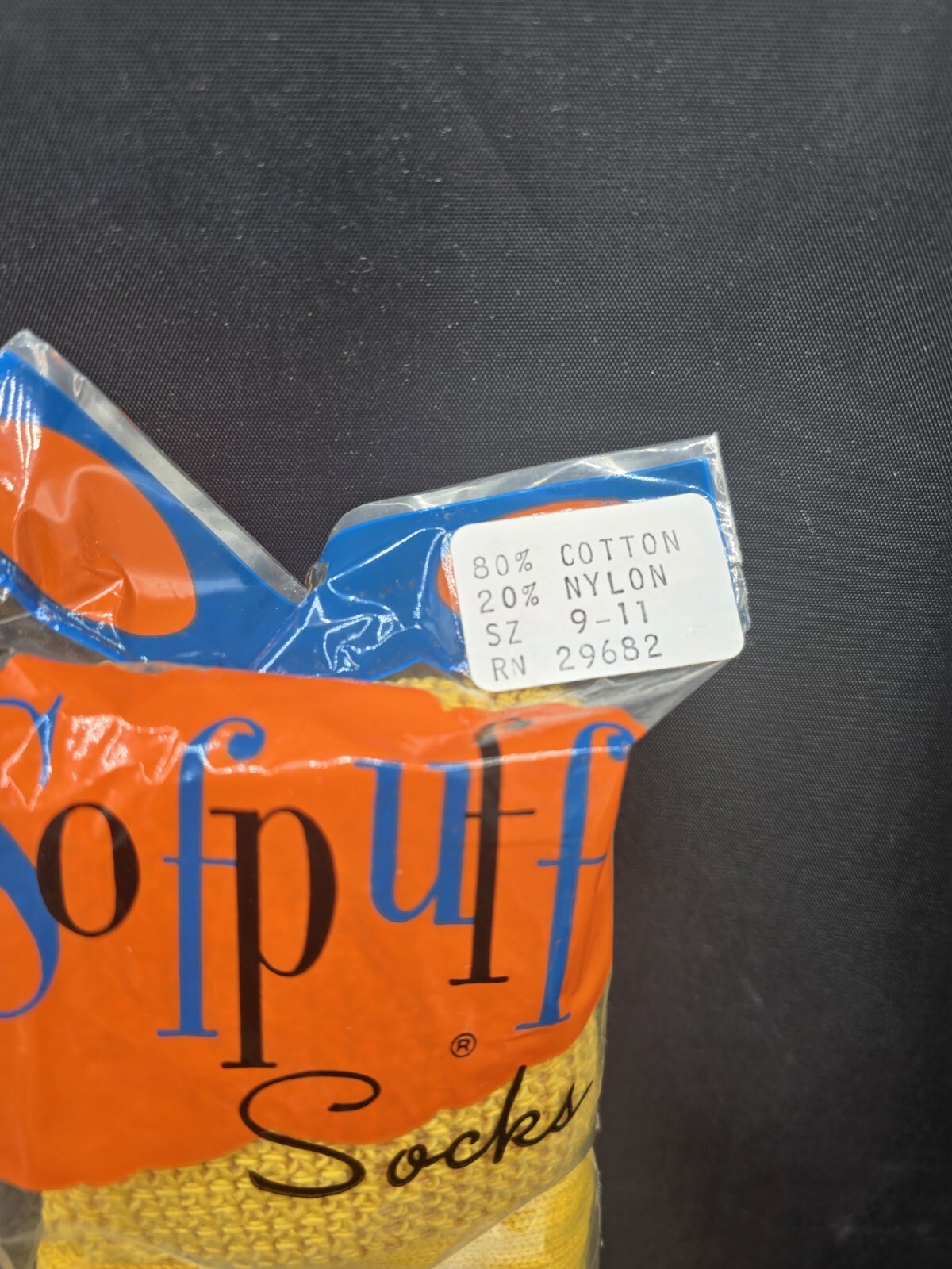 2 Pair Vintage Sofpuff Ankle Crew Socks Vacuum Grip Yellow Orange Sz 9-11 USA