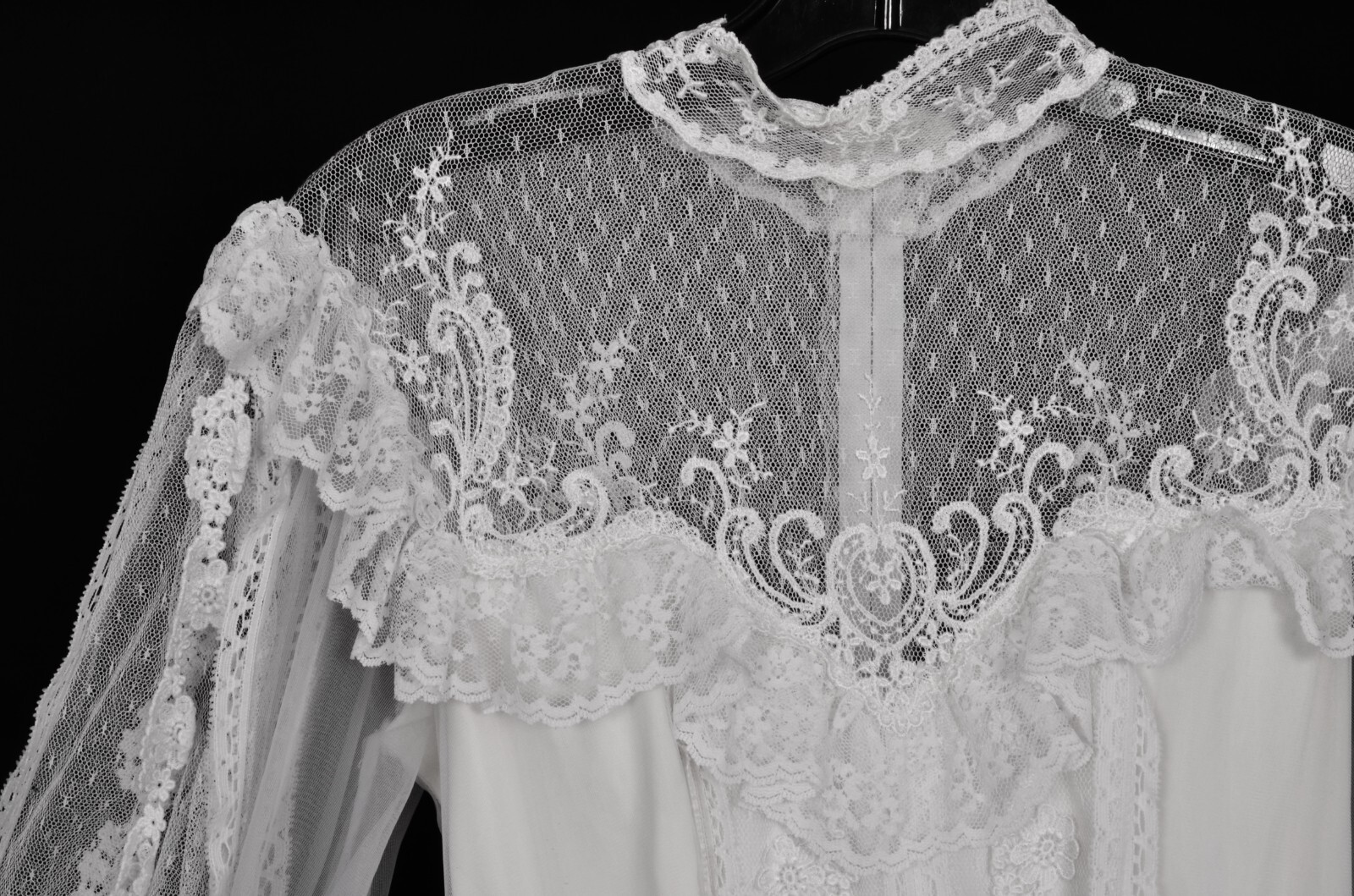 White Cotton and Lace Wedding Gown with Lace Sleeves
