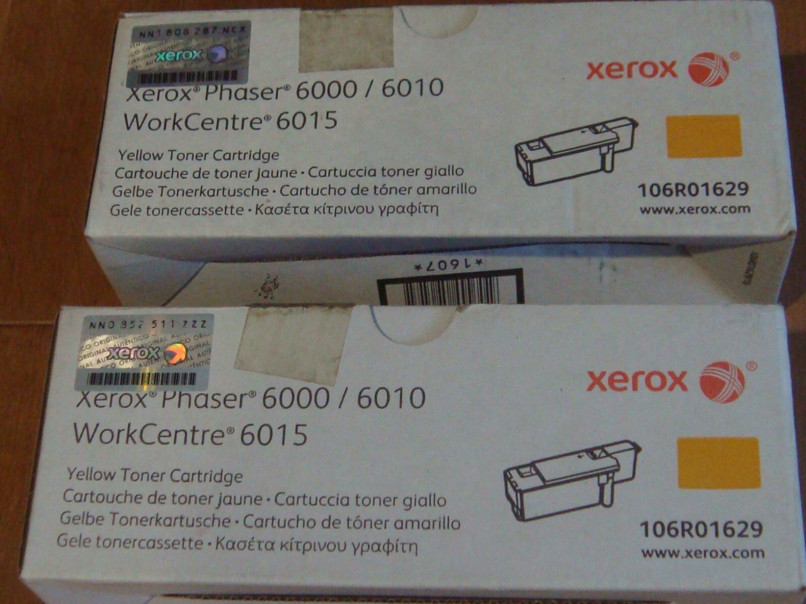 как выглядит 2x XEROX PHASER 6000, 106R01633 YELLOW TONER, sat on shelf for a couple years фото