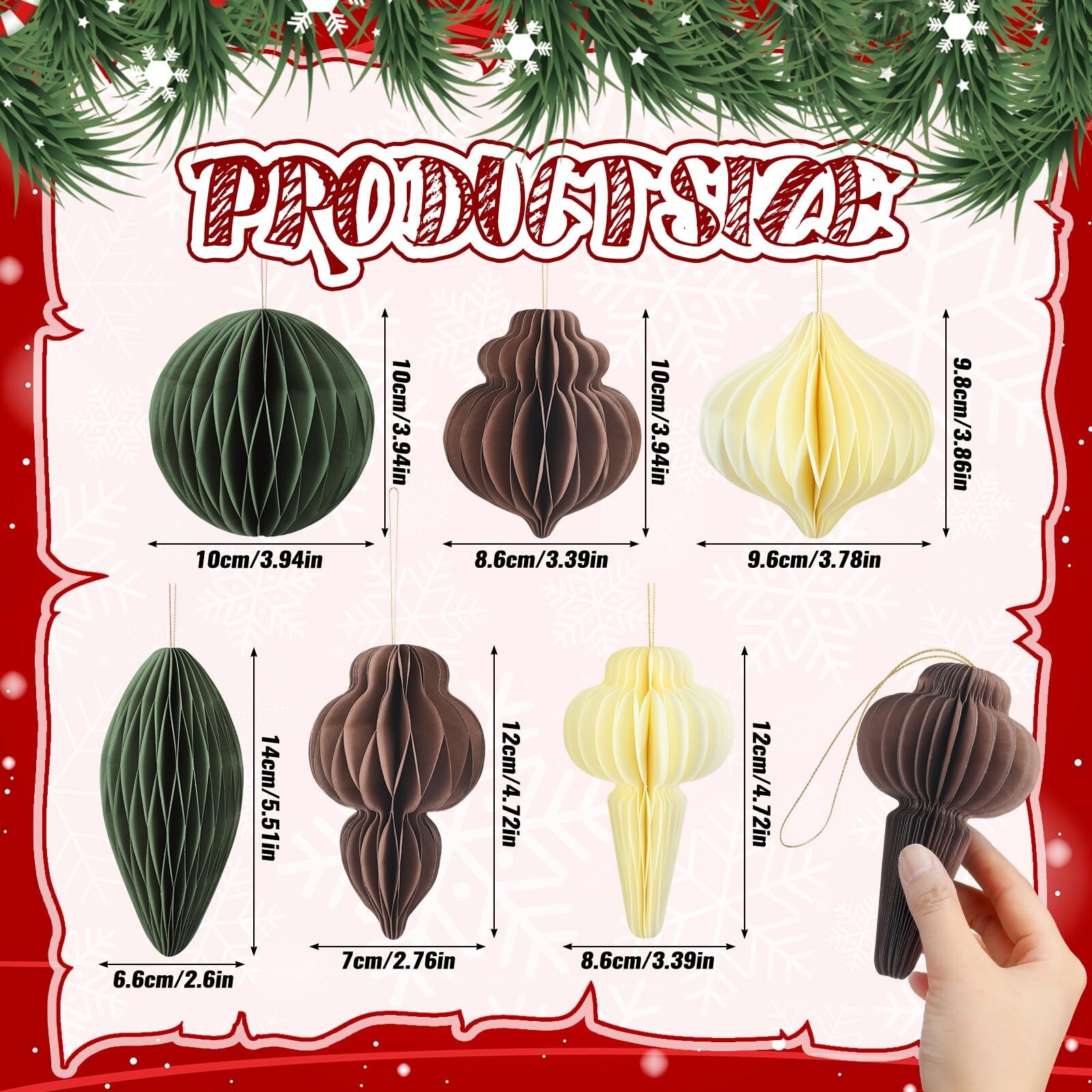 18 Pcs Christmas Paper Honeycomb Decorations Paper Hanging Ornament for Tree ...