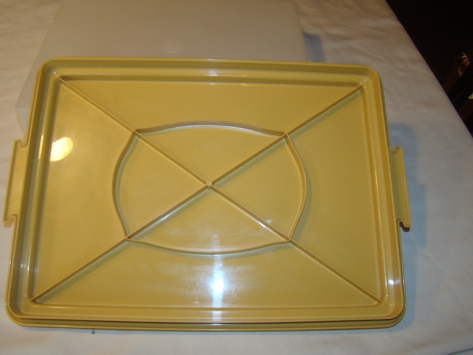 Vintage Tupperware Sheet Cake Carrier Harvest Gold Rectangle Keeper 15x11