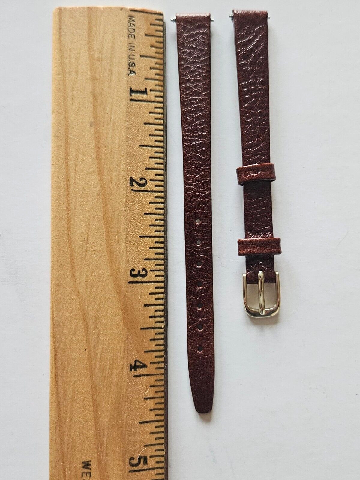 10mm / Long - Brown Genuine Leather Watch Band - Gold Buckle / Pins Included