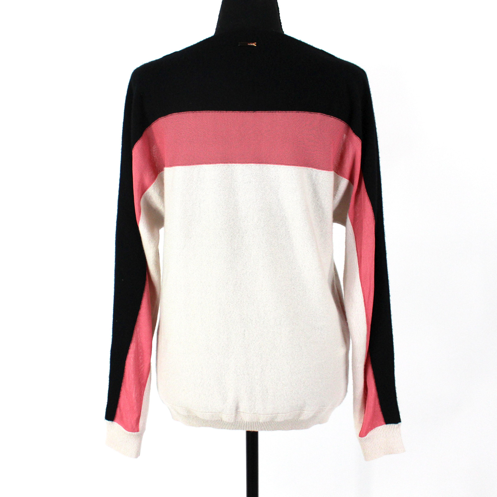 Fendi Cashmere Boatneck Sweater Pink Stripe Mesh Detail Black White Colorblock S
