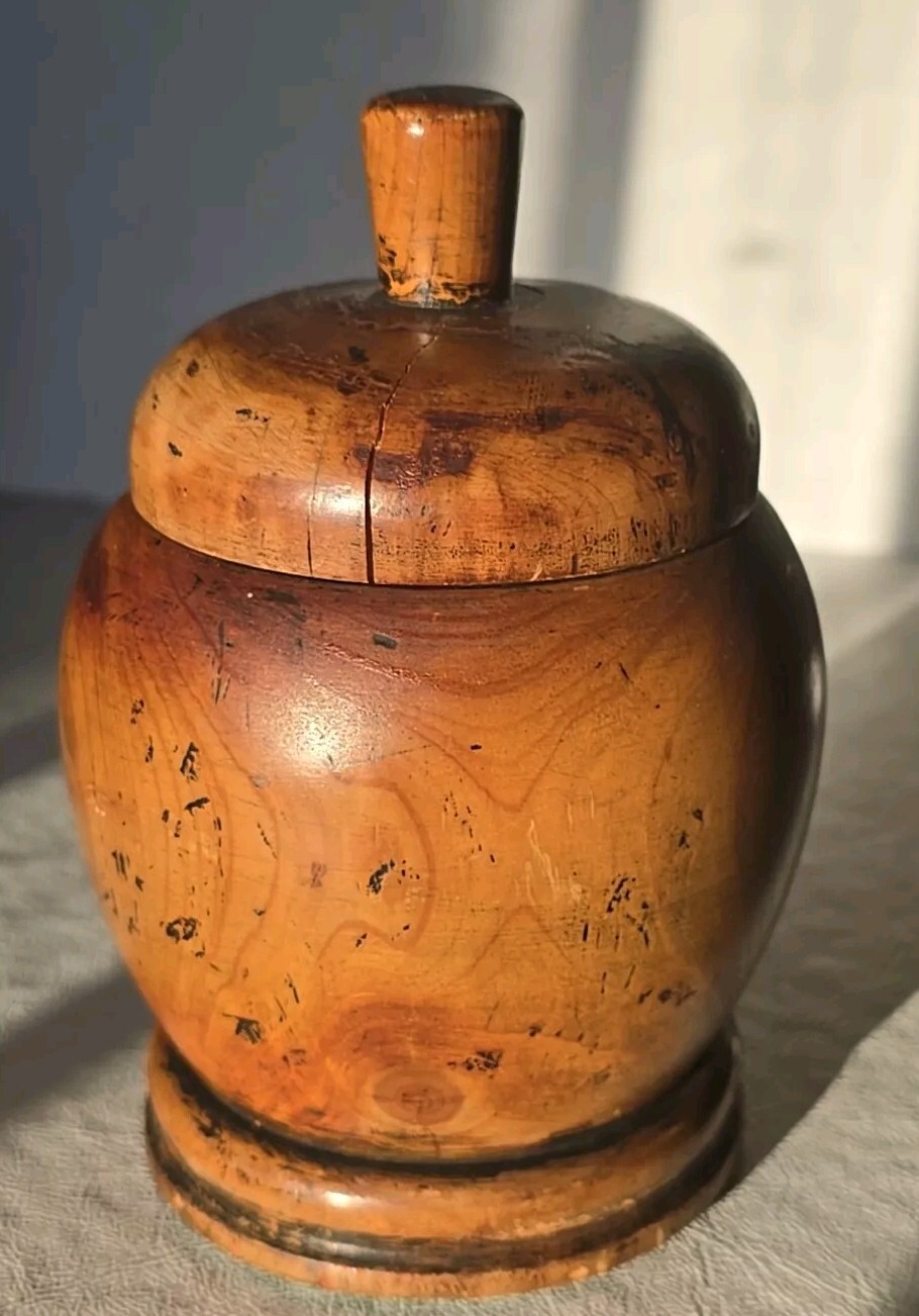 Beautiful Hand Turned, Covered Wooden Bowl, Jar Box W/ 5.5 Tall