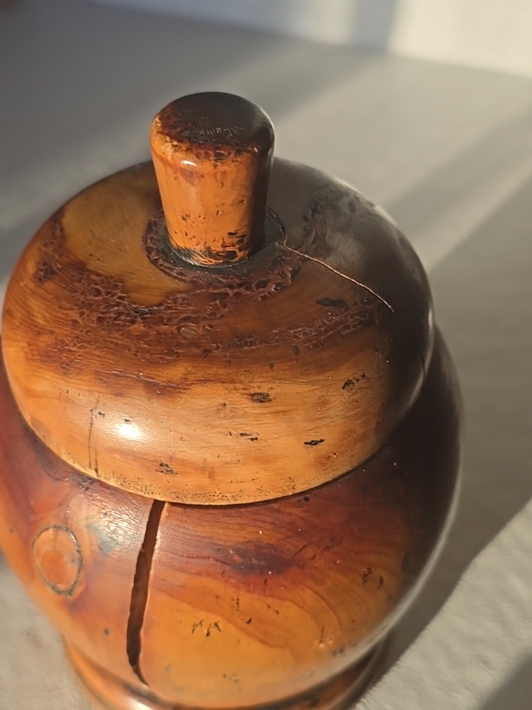 как выглядит Beautiful Hand Turned, Covered Wooden Bowl, Jar Box W/ 5.5" Tall фото