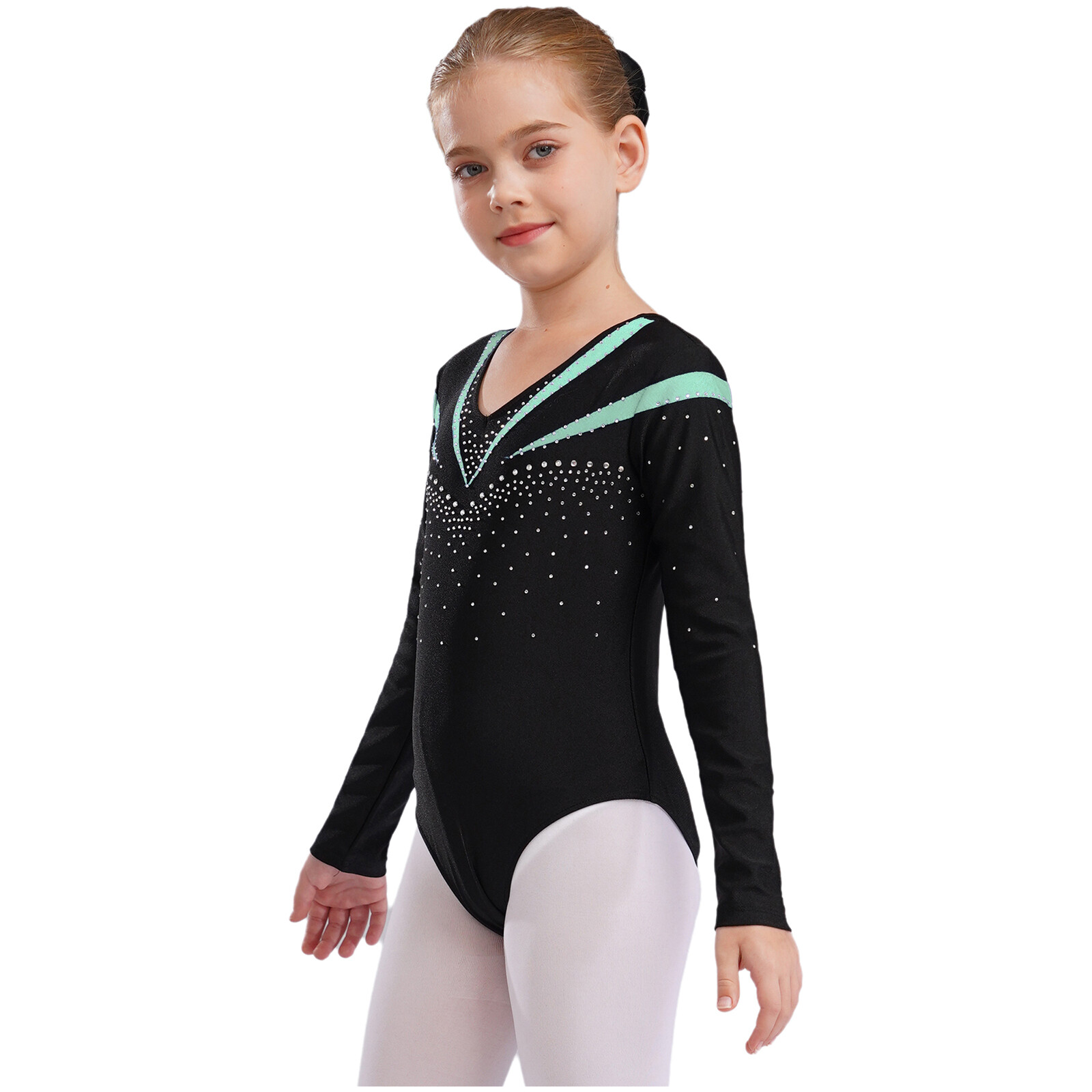 Kid Girls Shiny Rhinestone Long Sleeve Gymnastics Leotard Ballet Dance Dancewear