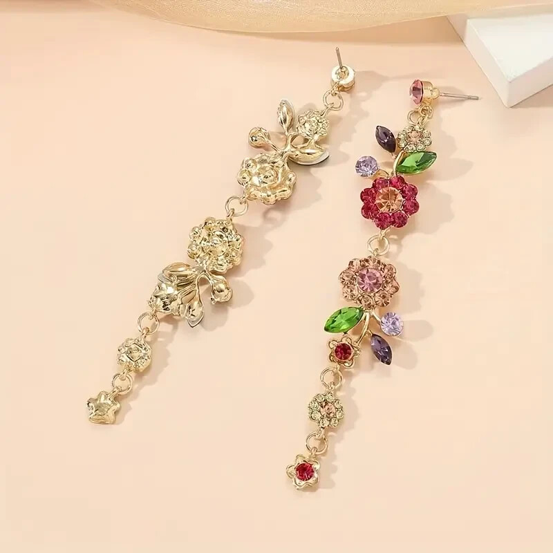 Colorful Boho Shiny Rhinestone Exquisite Flower Design Dangle Drop Earrings