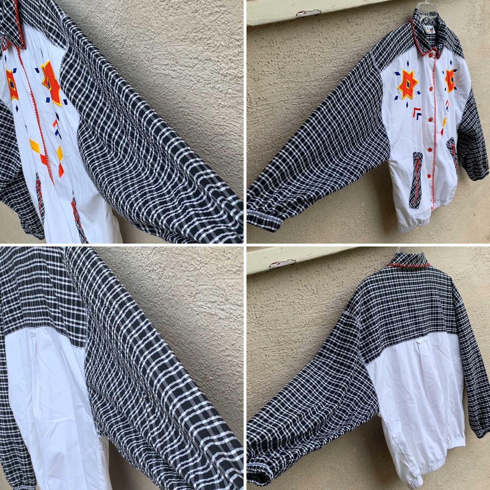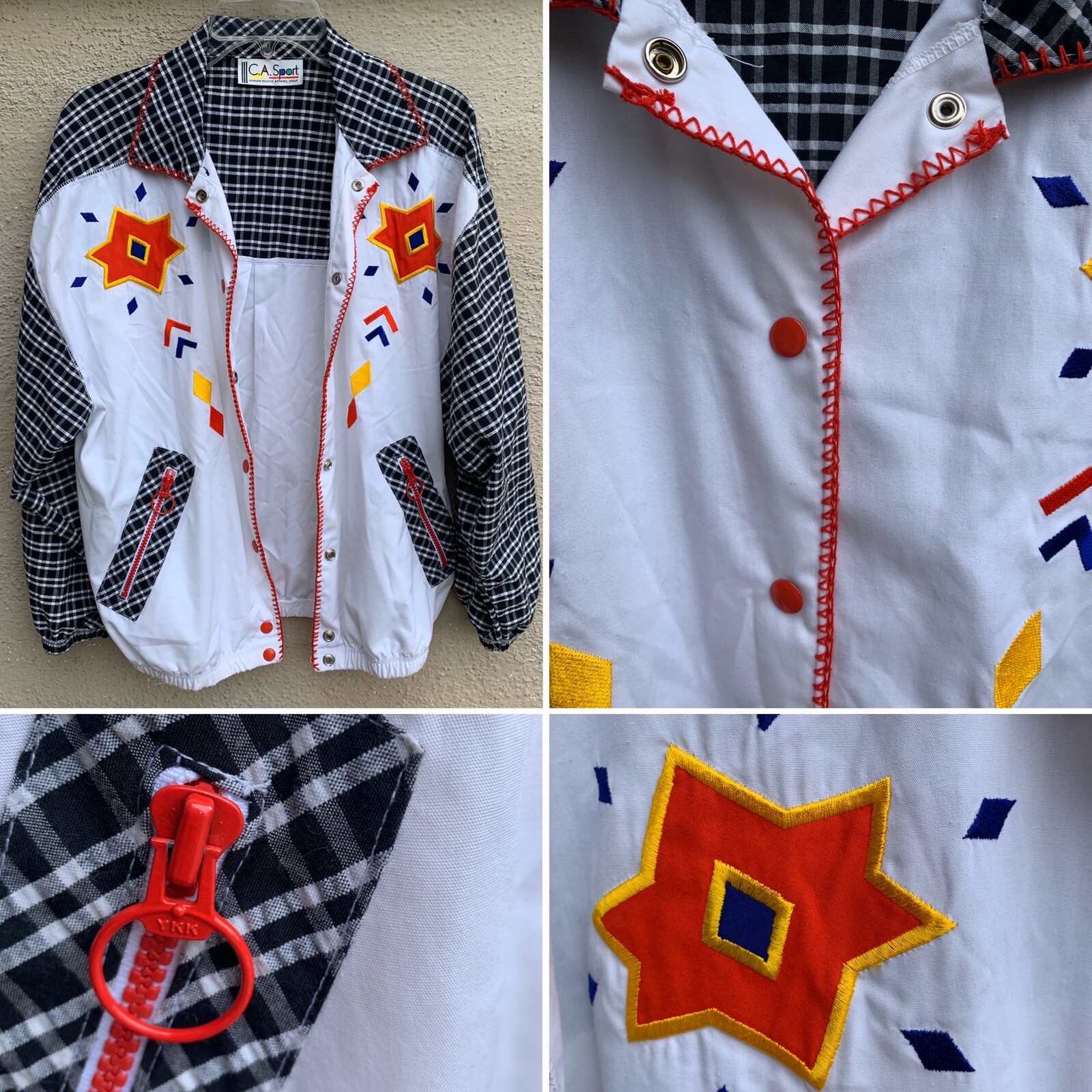 Vintage CA Sport Jacket Geometric Plaid Light Weight Snap Front 80s 90s 1980s