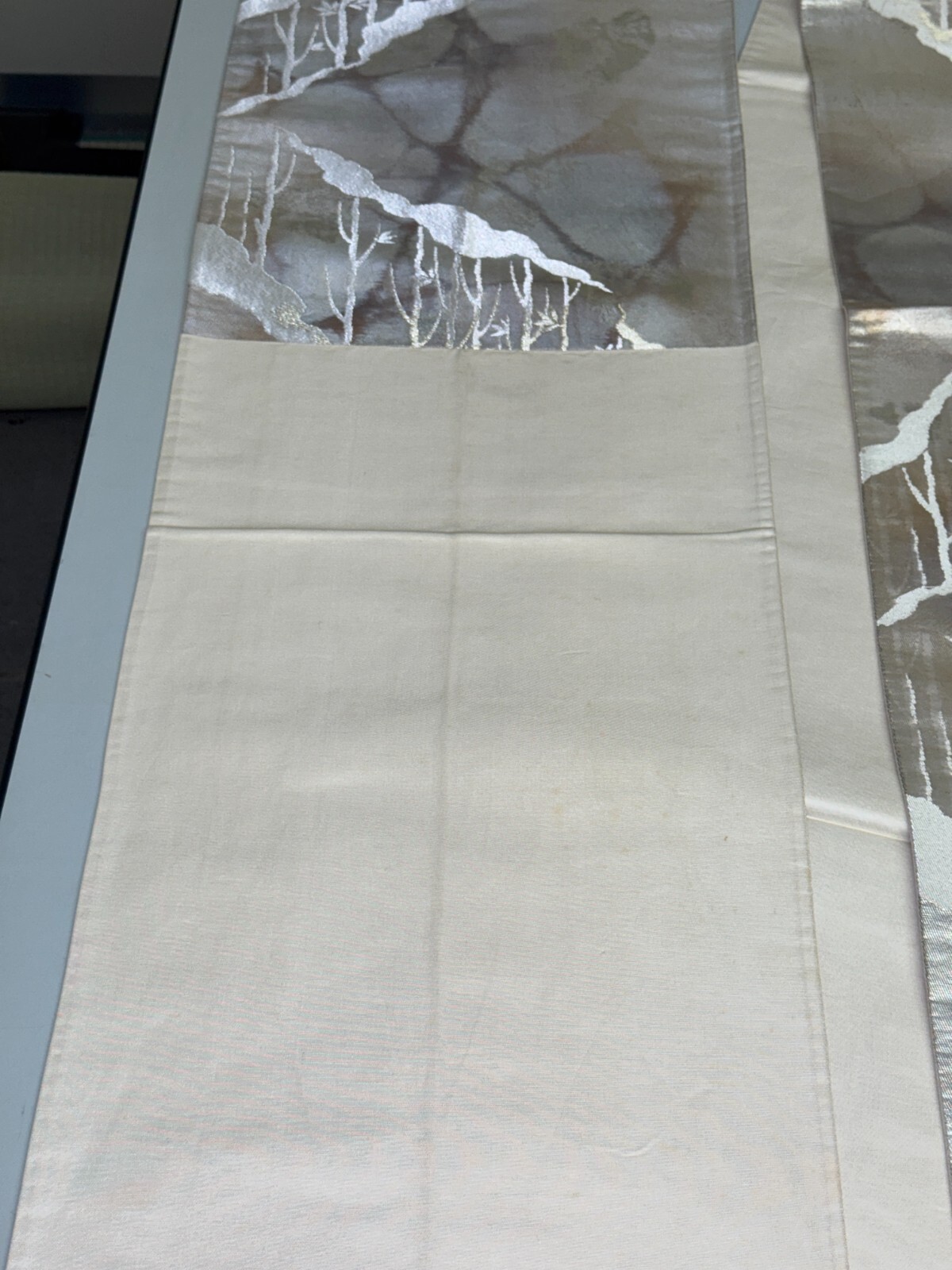 как выглядит Japanese Vintage Kimono Fukuro Obi silk Silver Scenery Expensive 161.4x12.2in фото