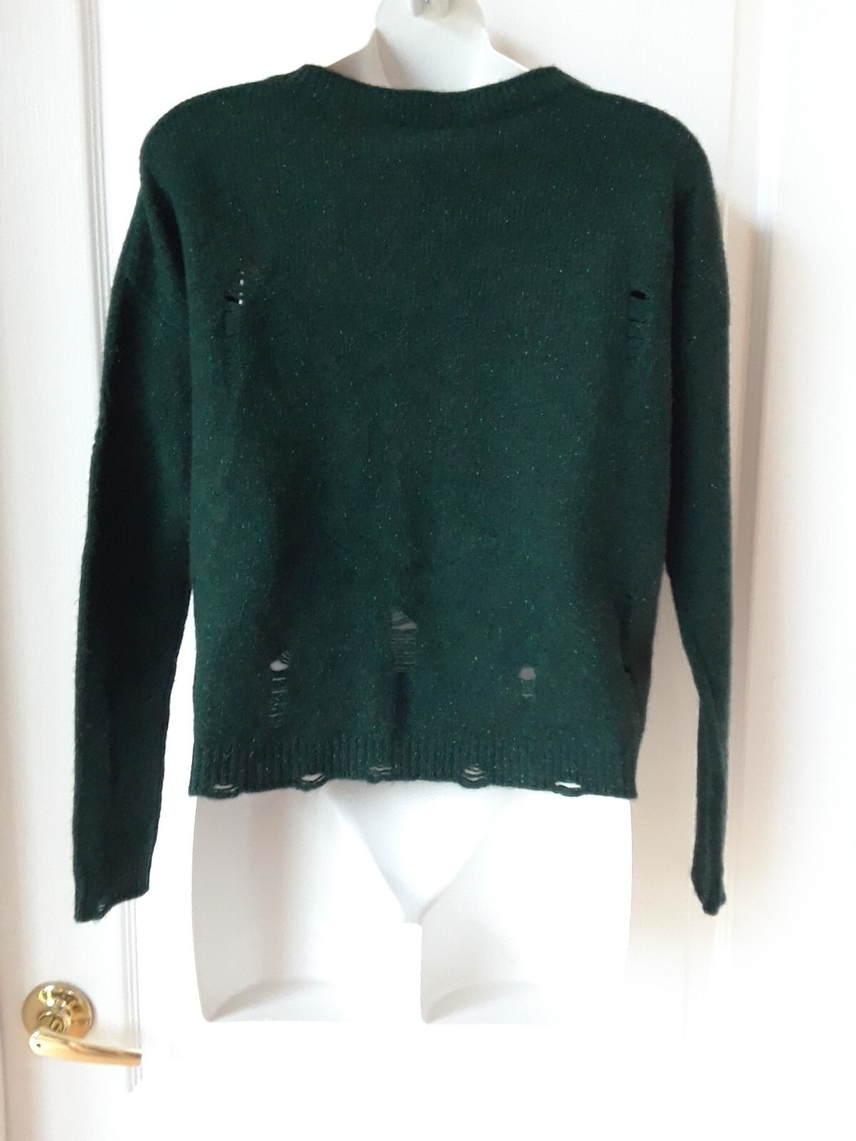 как выглядит AQUA Cashmere Distressed Geometric Knit RARE V Neck Sweater Womens XS L/S NWT фото