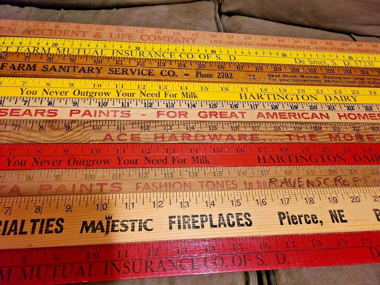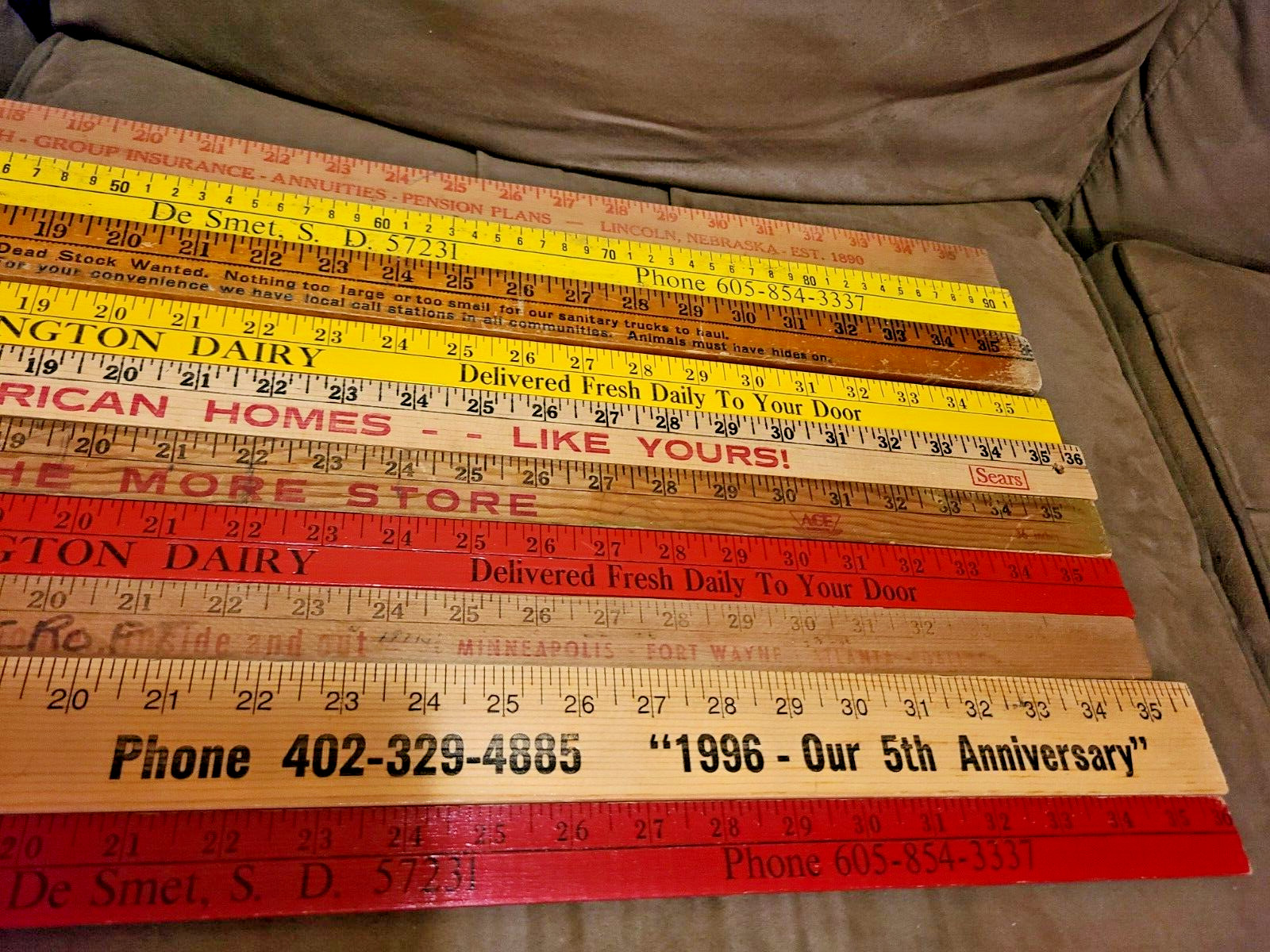 Vintage Lot of 10 Wooden Advertising Yardsticks Rulers