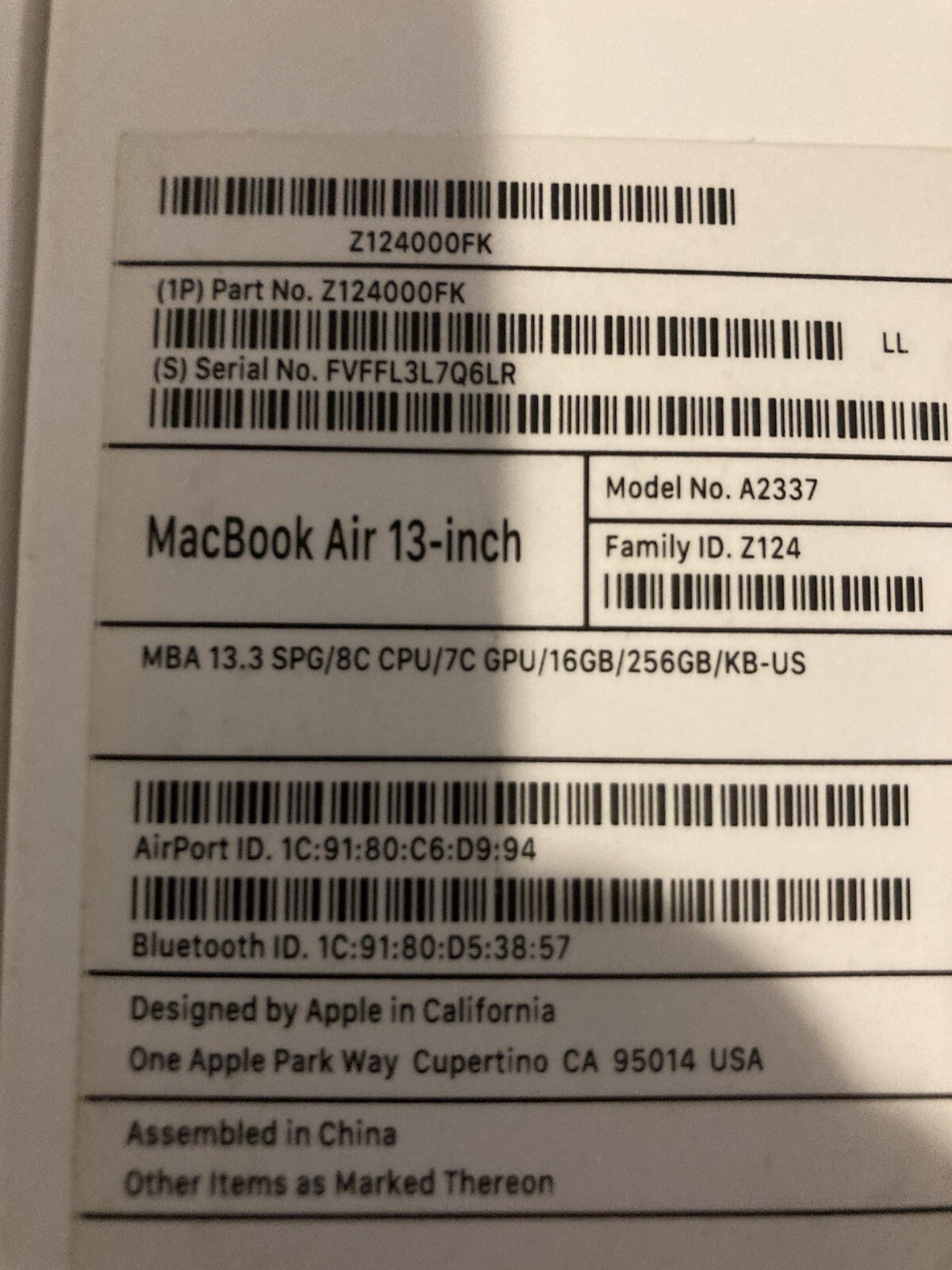 Apple MacBook Air 13 Model A2337 Silver 256GB Empty Box Only