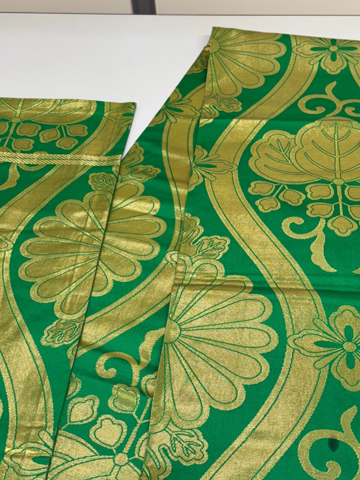 как выглядит Japanese Vintage Kimono Maru Obi silk green Reversible Expensive Dirt 159x12.5in фото
