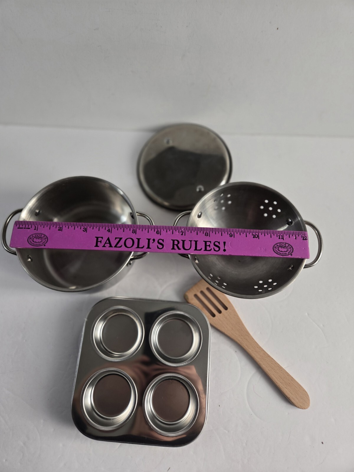 Melissa Doug Stainless Steel Muffin Pan Stock Pot Colander Bamboo Pretend Play