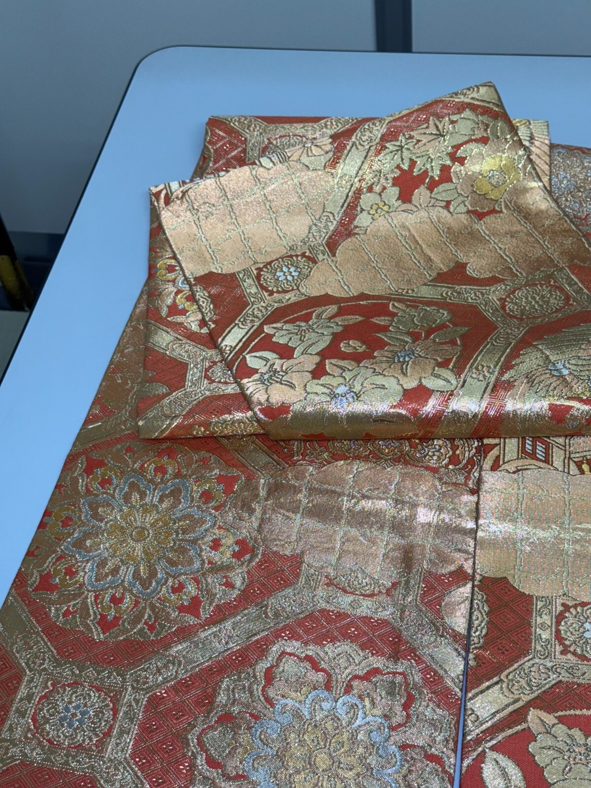 Japanese Vintage Kimono Maru Obi silk Gold embroidery Reversible177.1x12.2in