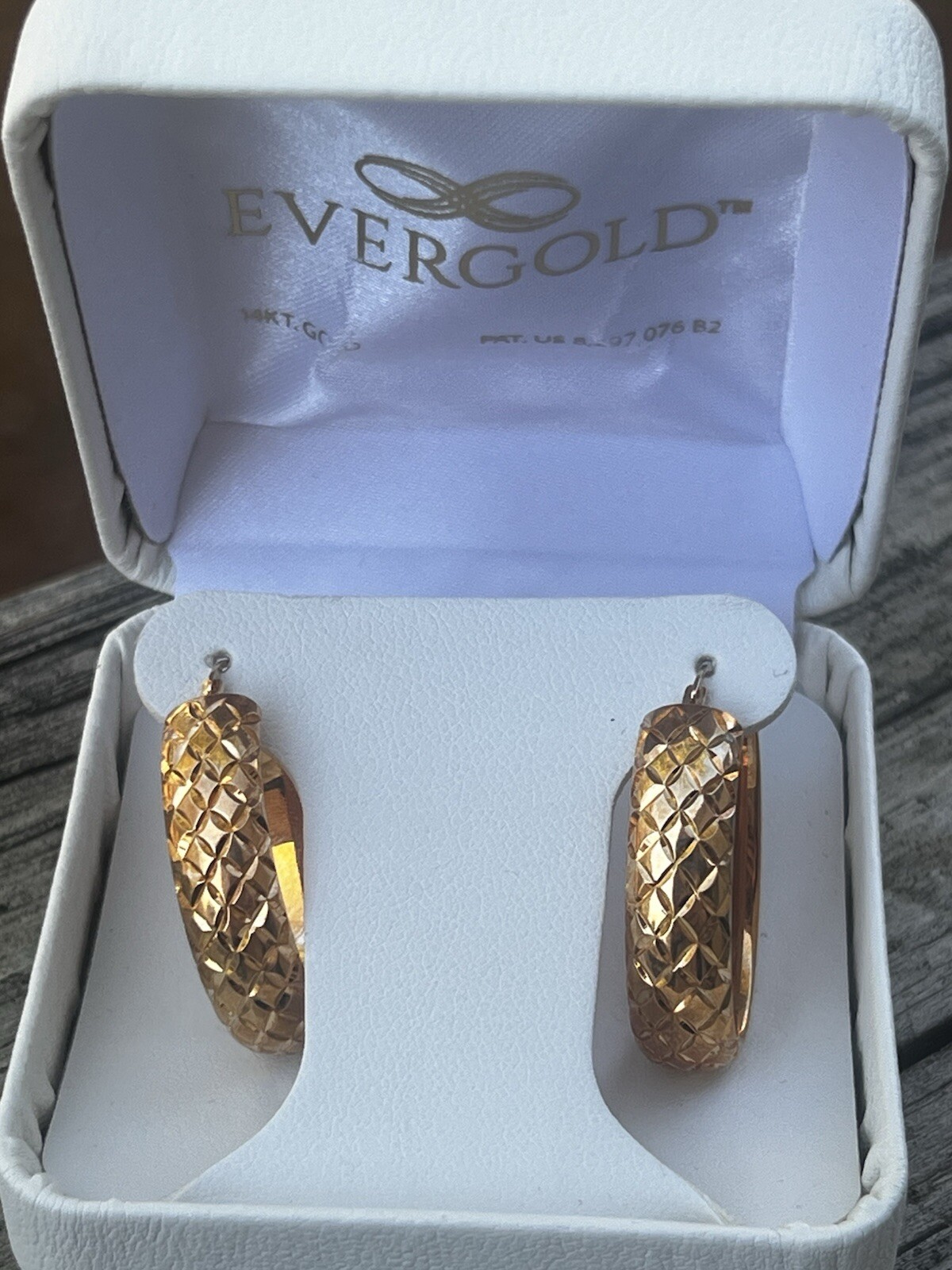 как выглядит 14k Yellow Gold Diamond Cut Oval Hoop Earrings 799 New In Box фото