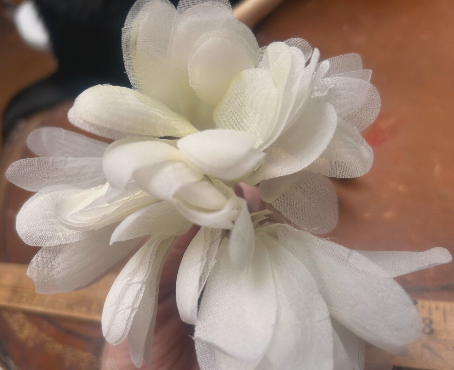 как выглядит vintage millinery silk petals 4" white 3 flowers made in Japan фото