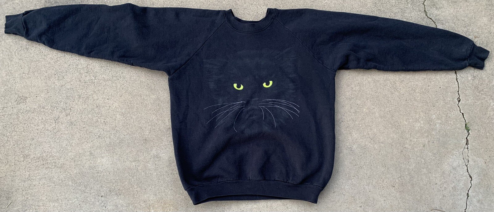 vintage black cat kitty graphics raglan sweatshirt made in USA size XL