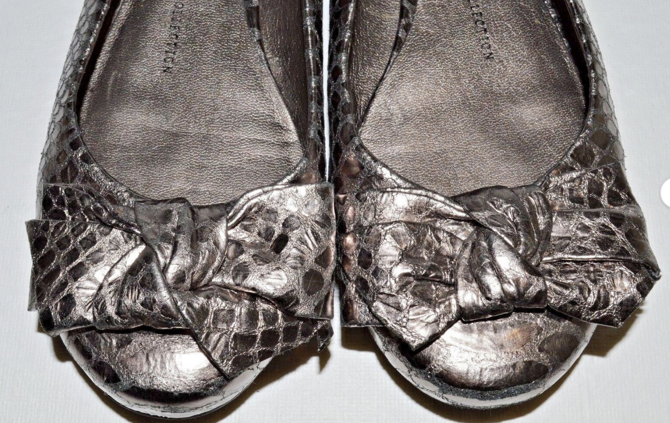 как выглядит FRANCO SARTO ARTIST COLLECTION FAME SIZE 6.5 M SILVER SNAKE LEATHER BALLET FLATS фото