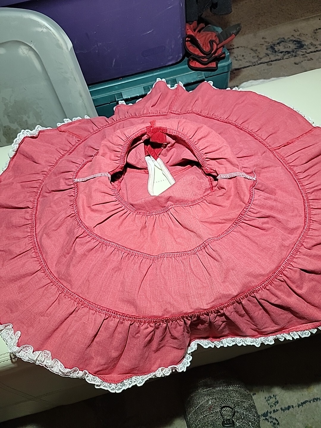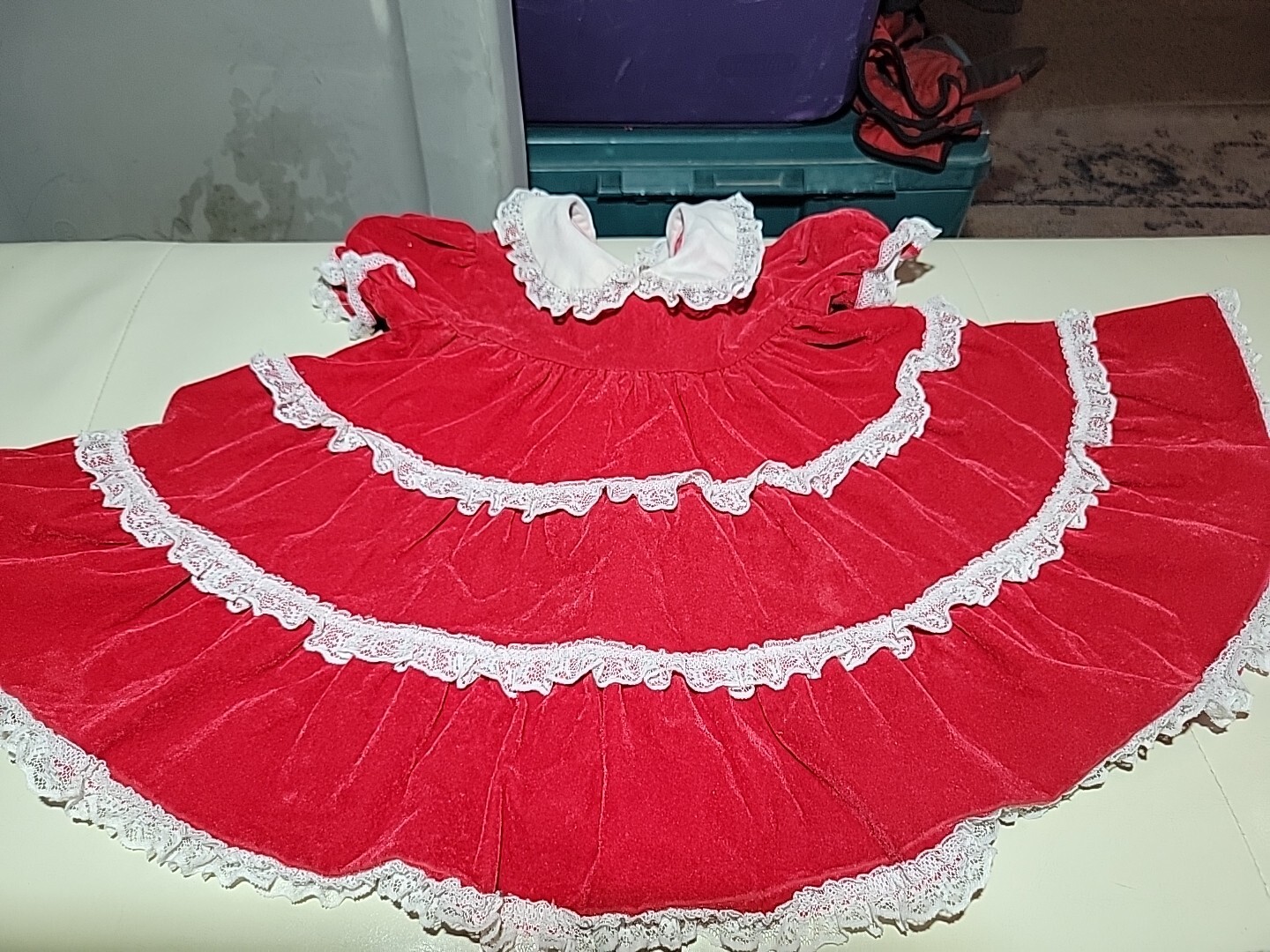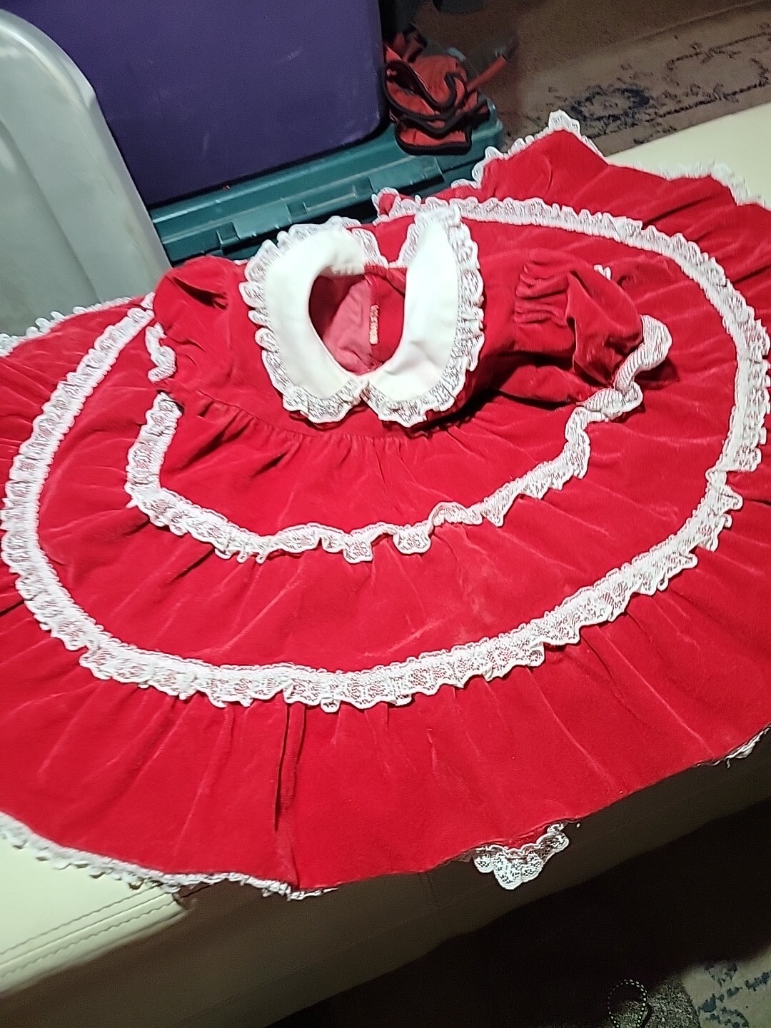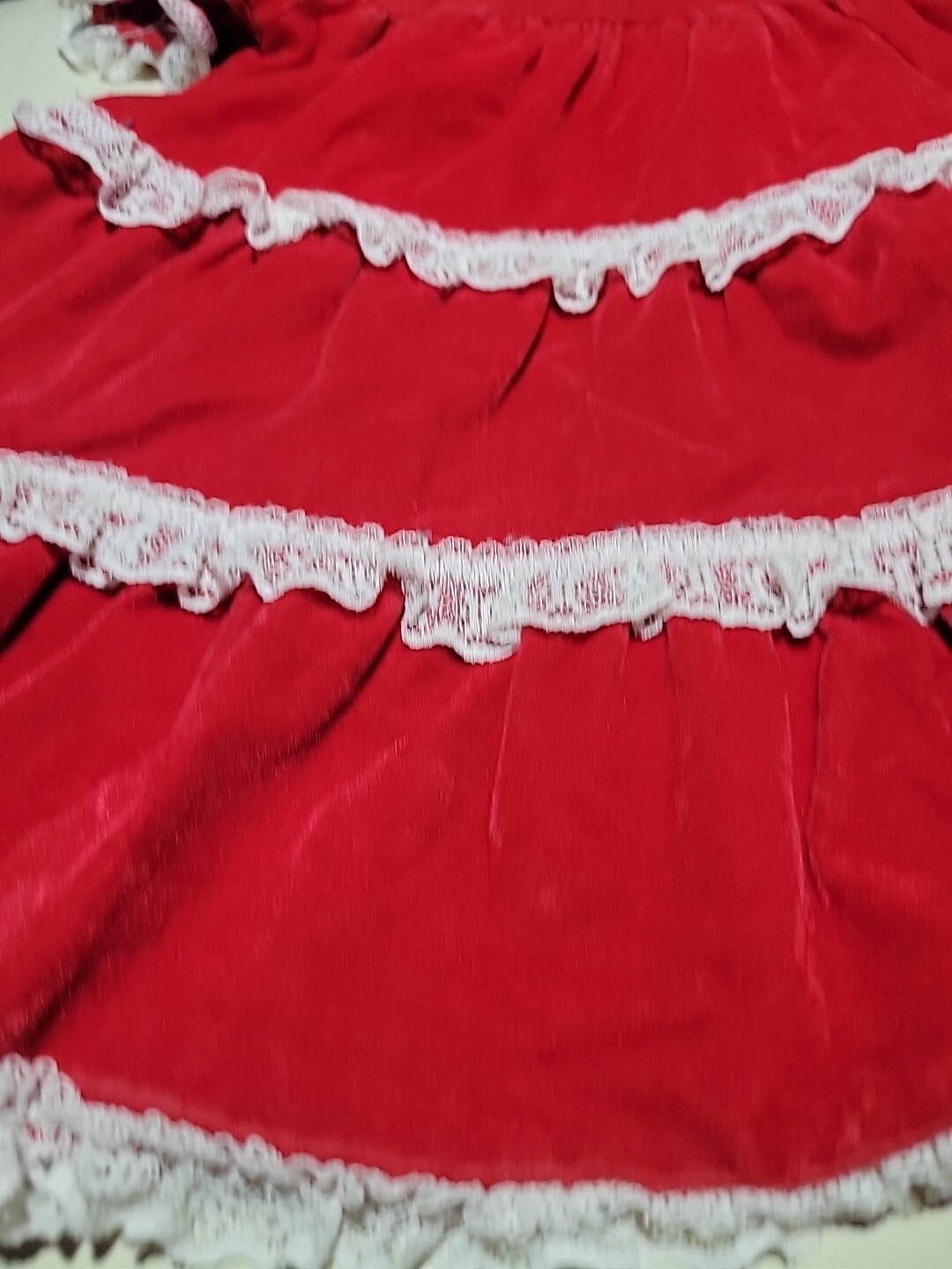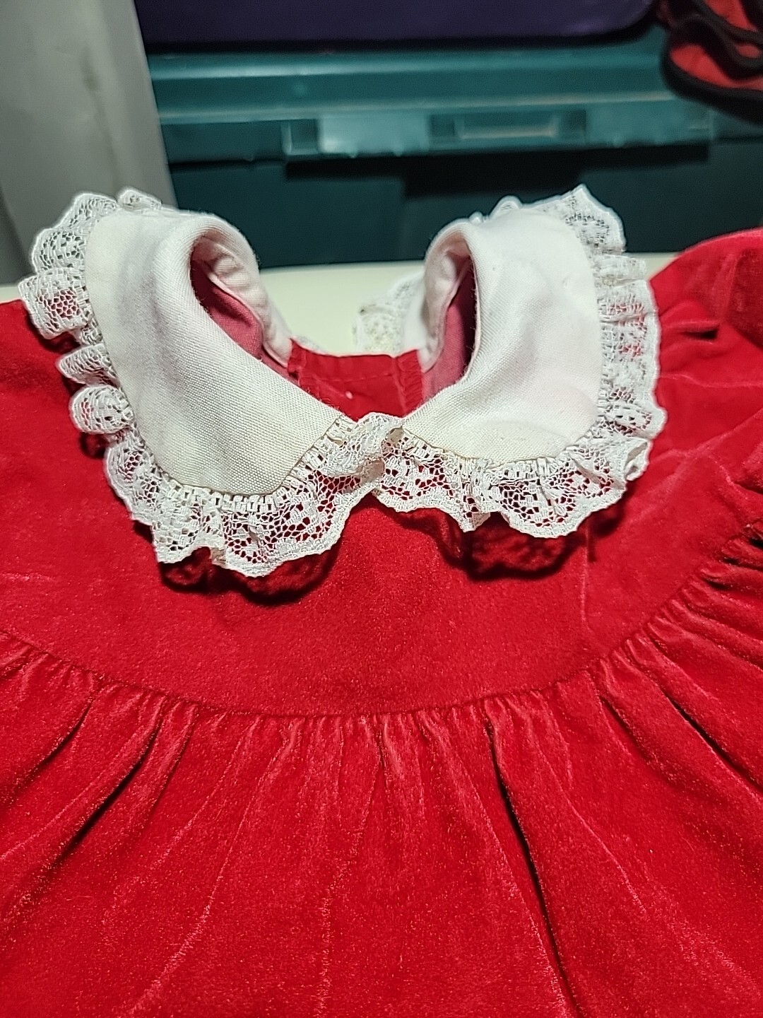 как выглядит Vintage Red Velvet W/White Lace Baby Dress 18/24 Months фото