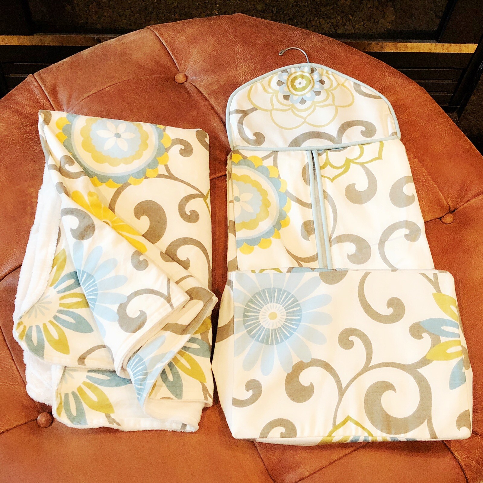 как выглядит Carousel Designs Floral Rare Baby Blanket And Matching Diaper Stacker Lot Soft фото