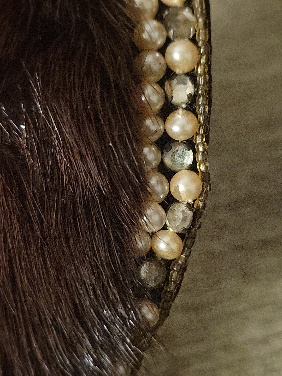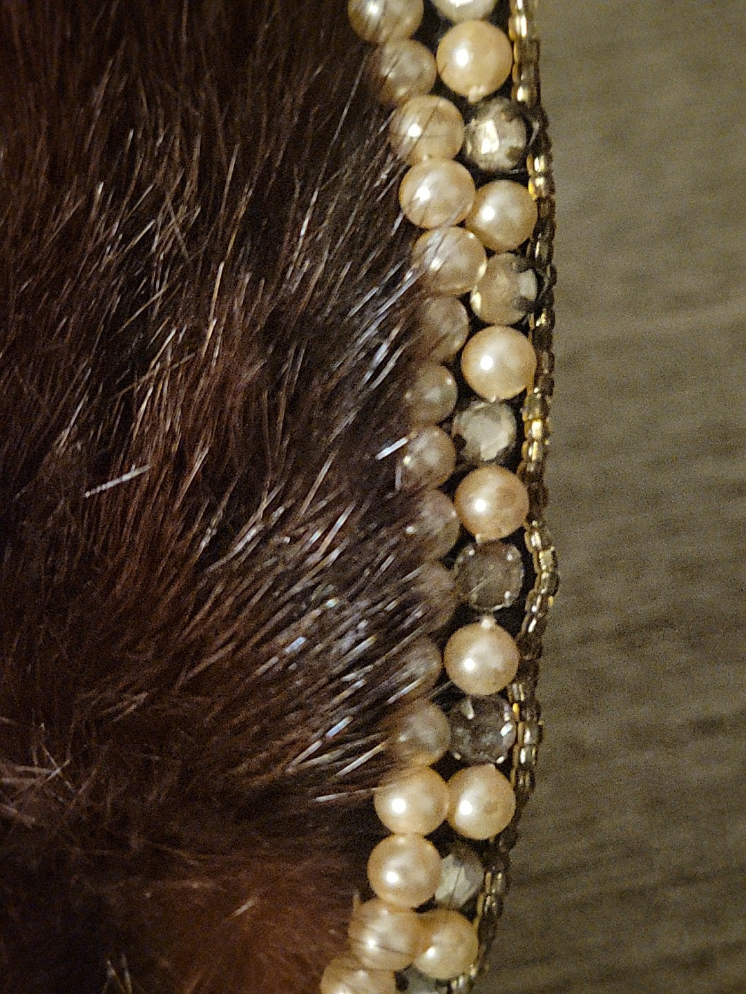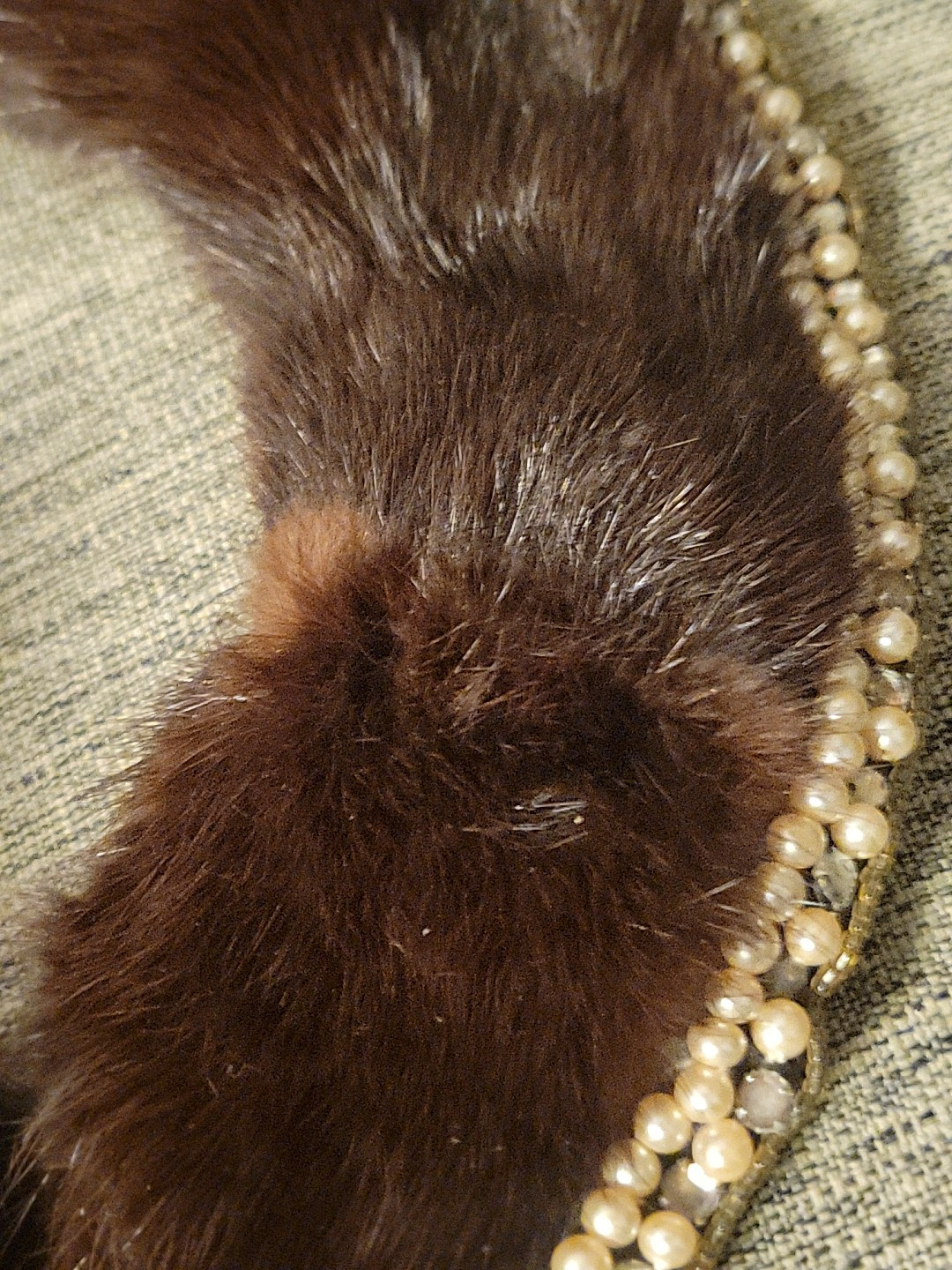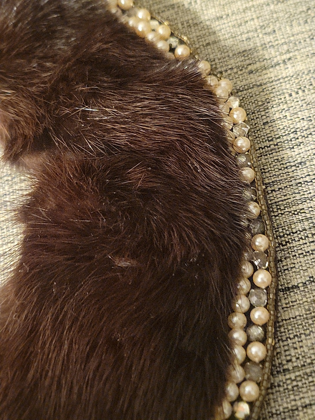 как выглядит READ Vtg Mink Fur Pearl Rhinestone Collar Japan Choker Necklace Brown Soft фото