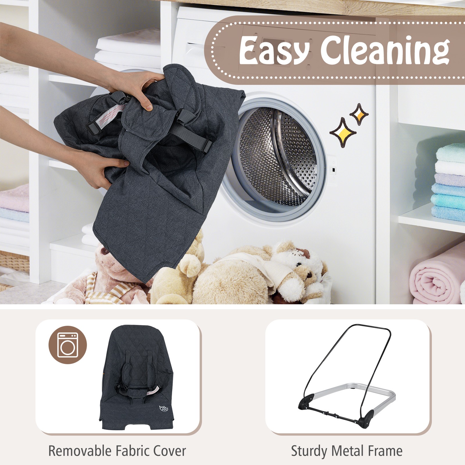 Baby Bouncer, Foldable Baby Rocker w/ 5-point Safety Harness