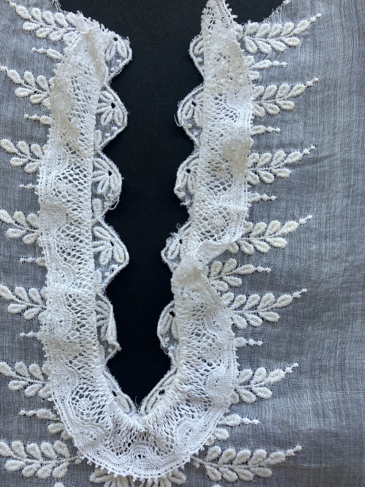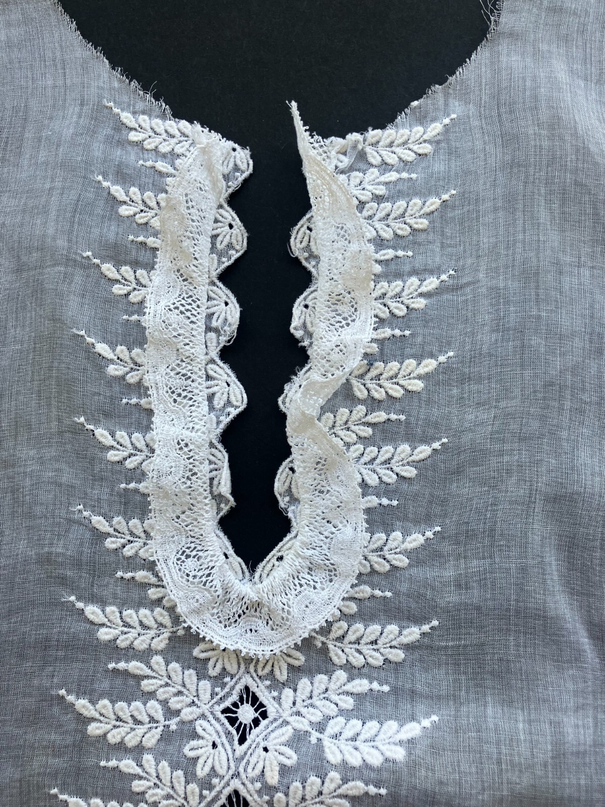 как выглядит Antique Edwardian Hand Embroidered French Fine Lawn Dress Front with Lace фото
