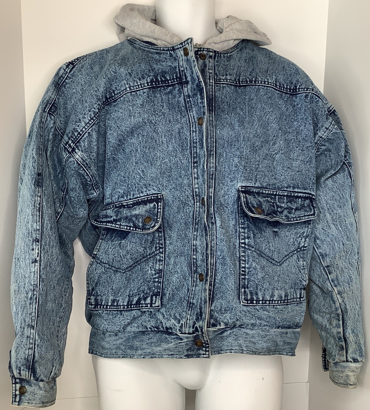 Vintage Sergio Valente Lined Jean Jacket Size Large L Stone Washed Hooded