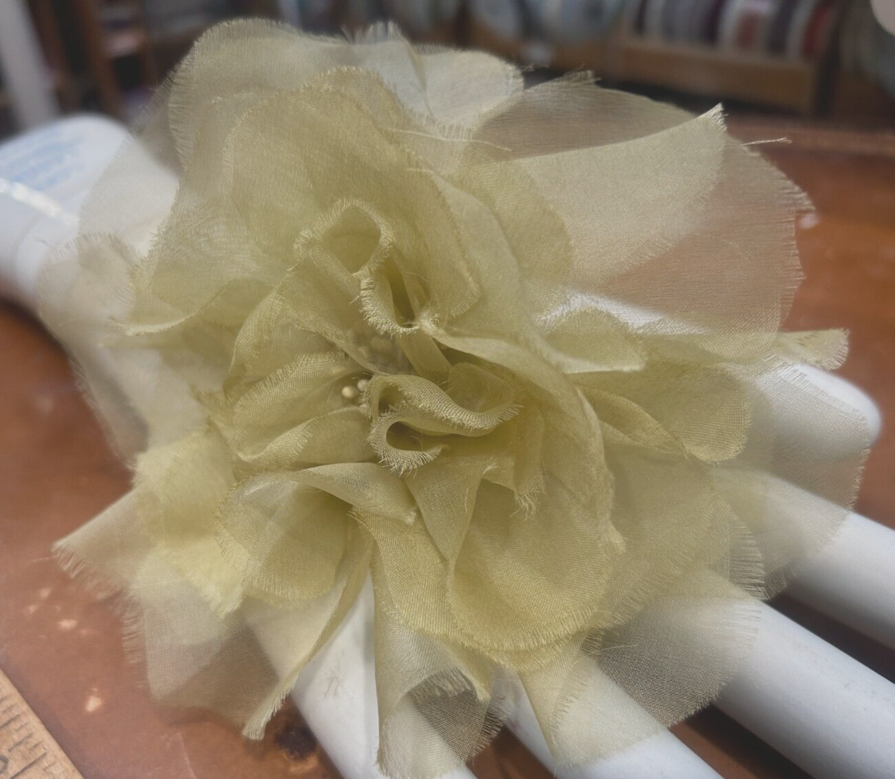 vintage millinery 1960s hand rolled flower green pear 6 organza silk 1pc USA