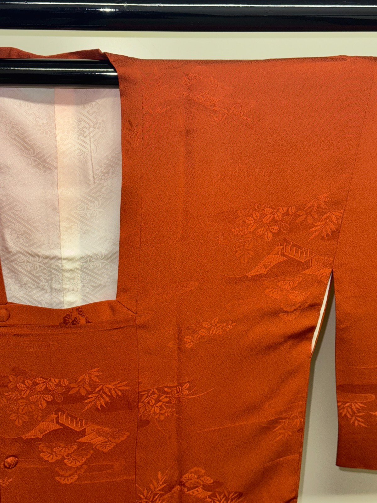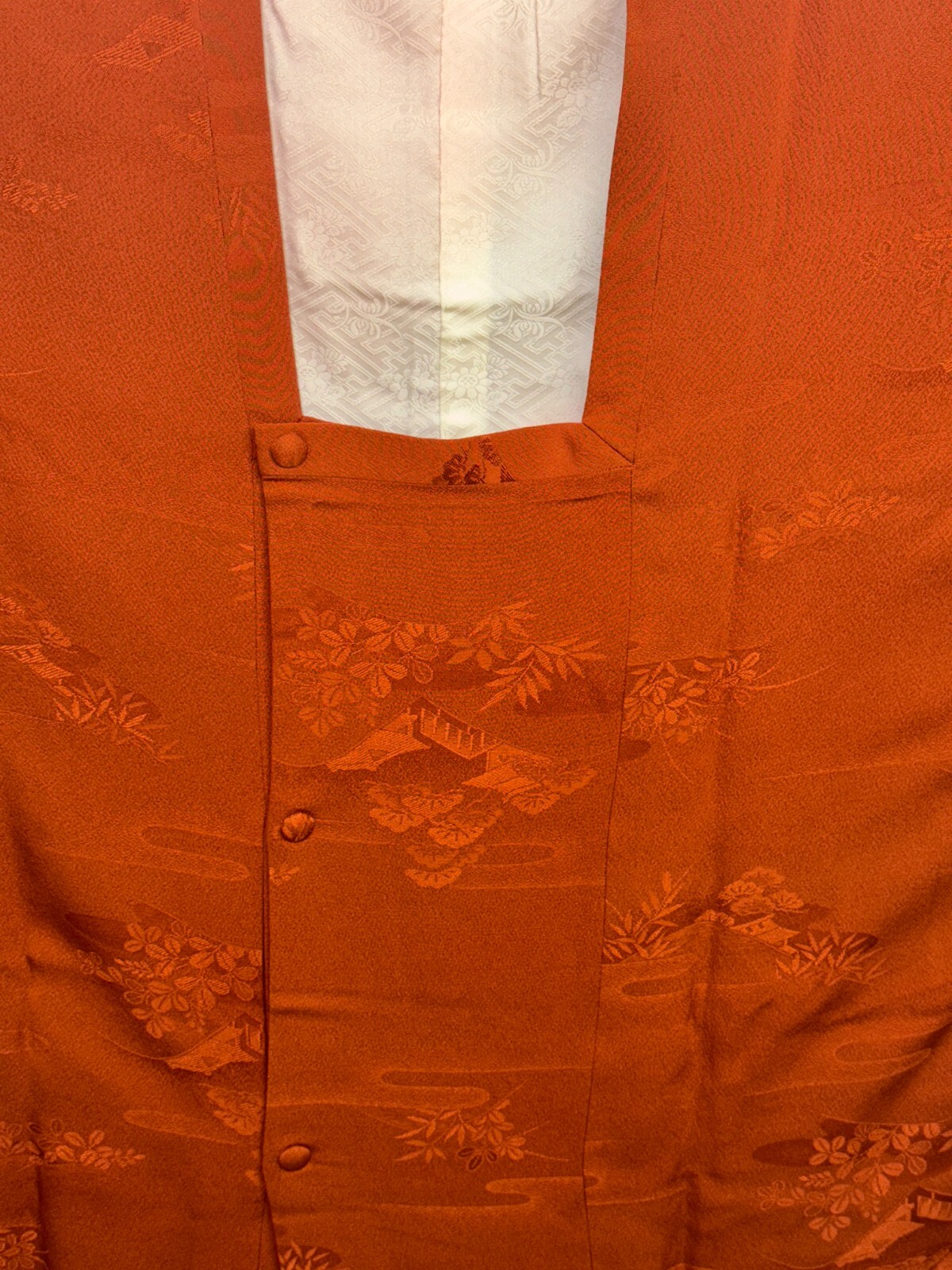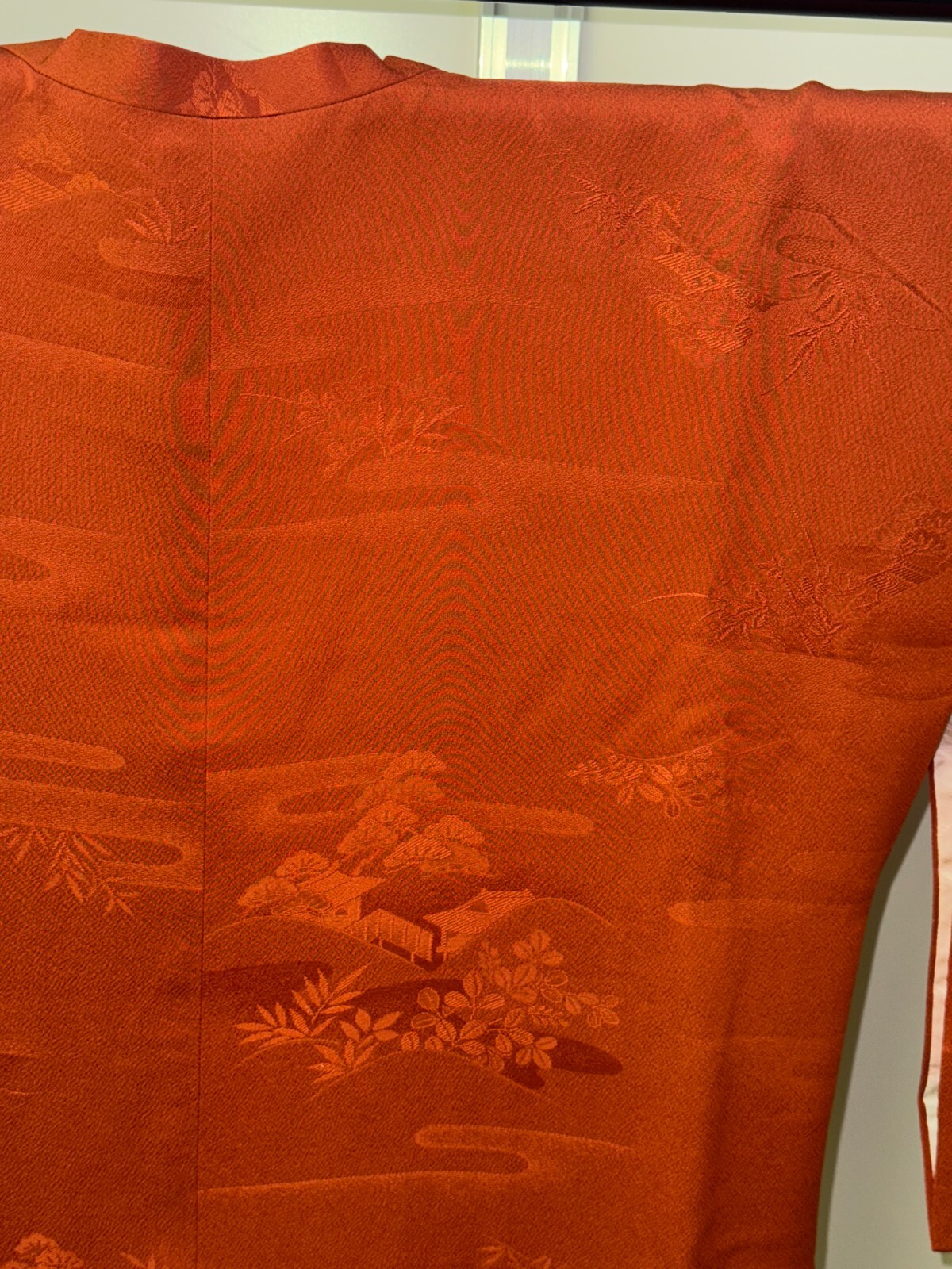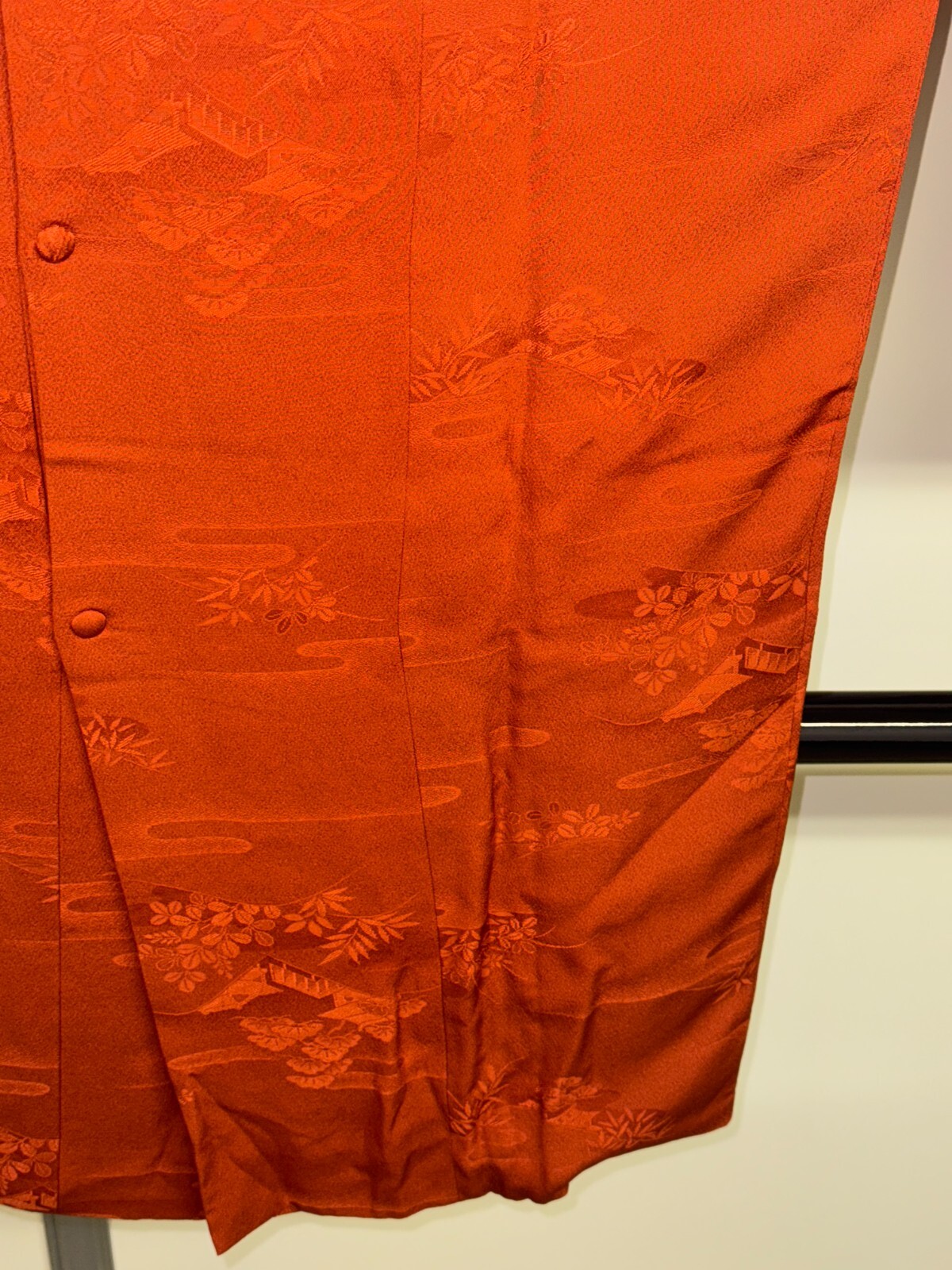 как выглядит Japanese Vintage Kimono Michiyuki coat Jacket Silk Brown Orange Height 39.37in фото