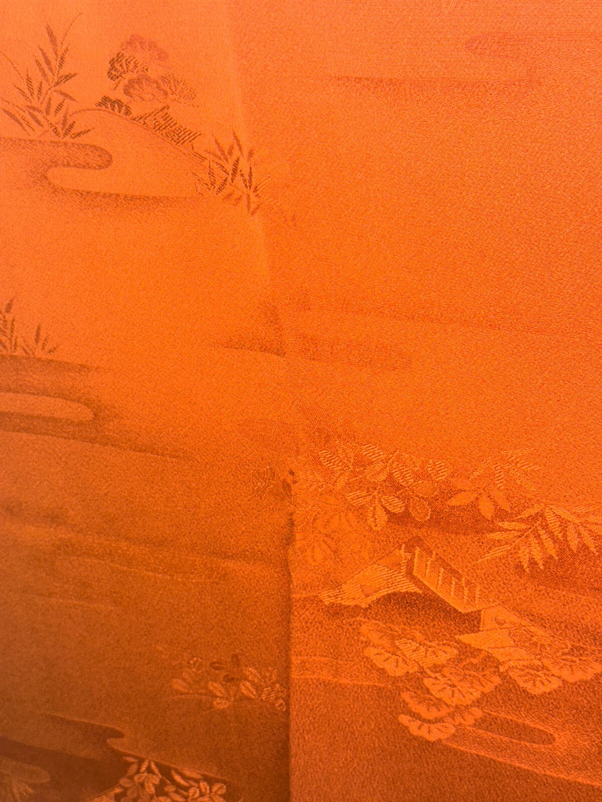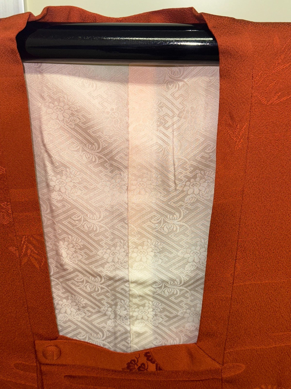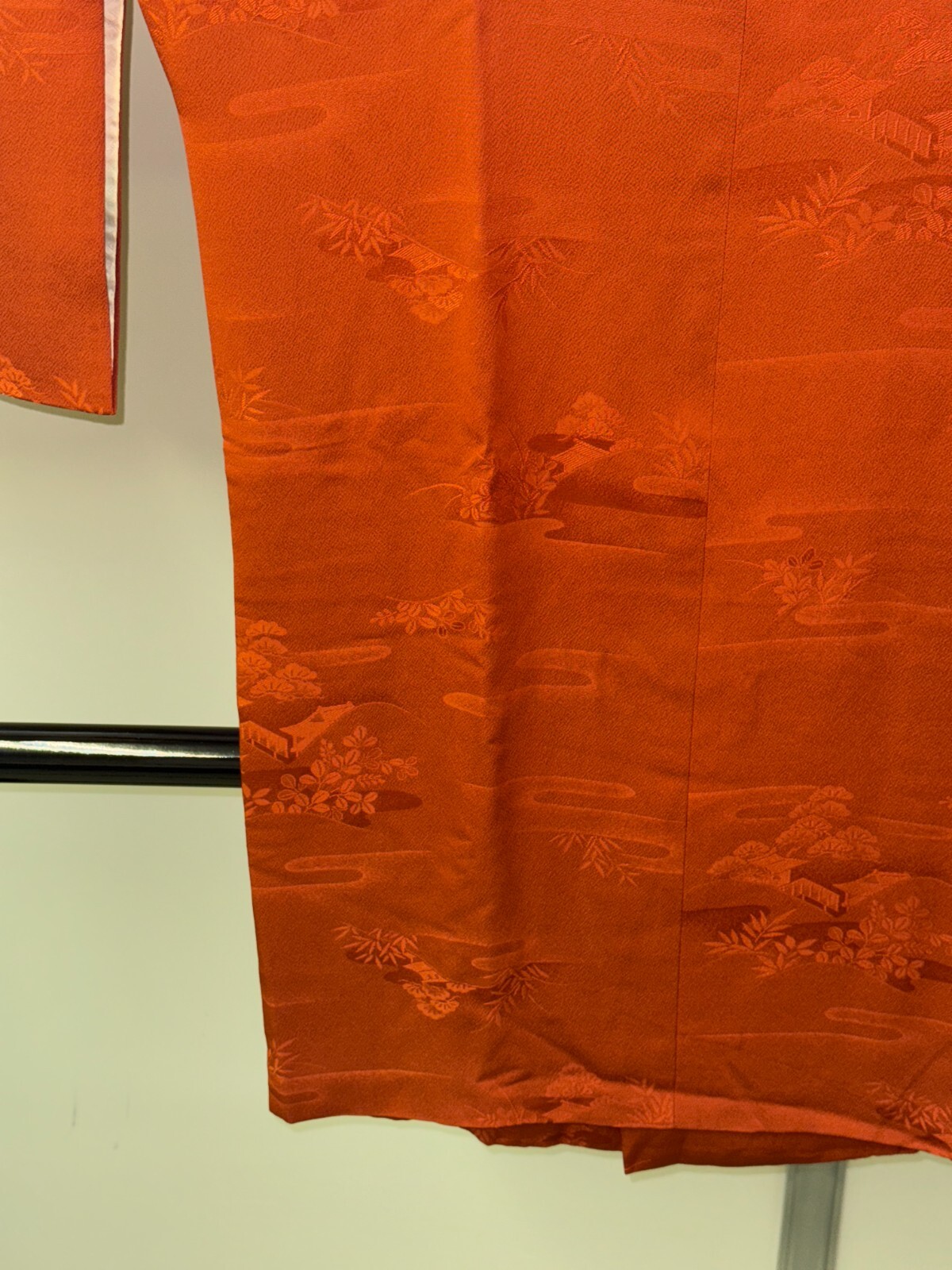 как выглядит Japanese Vintage Kimono Michiyuki coat Jacket Silk Brown Orange Height 39.37in фото