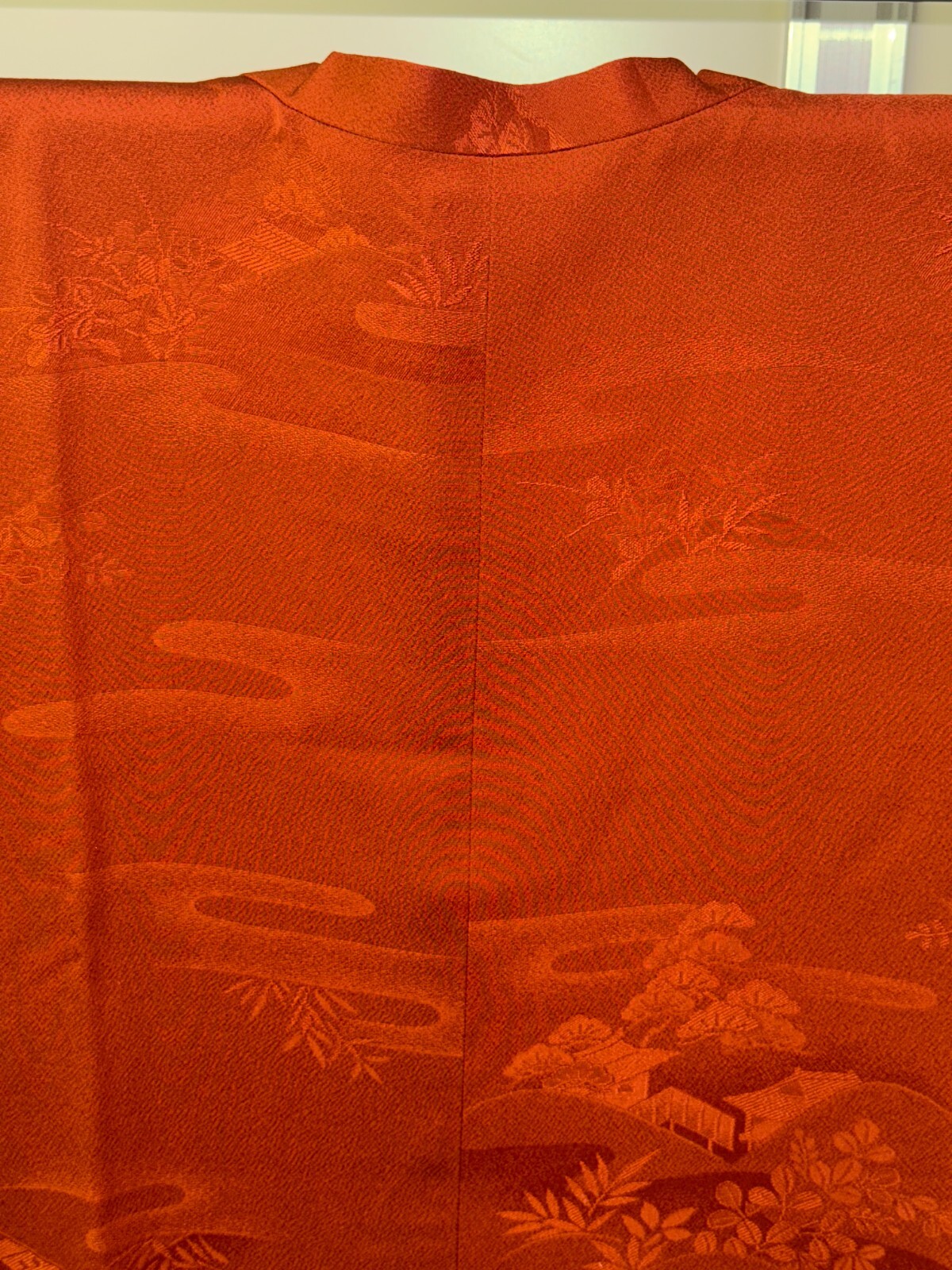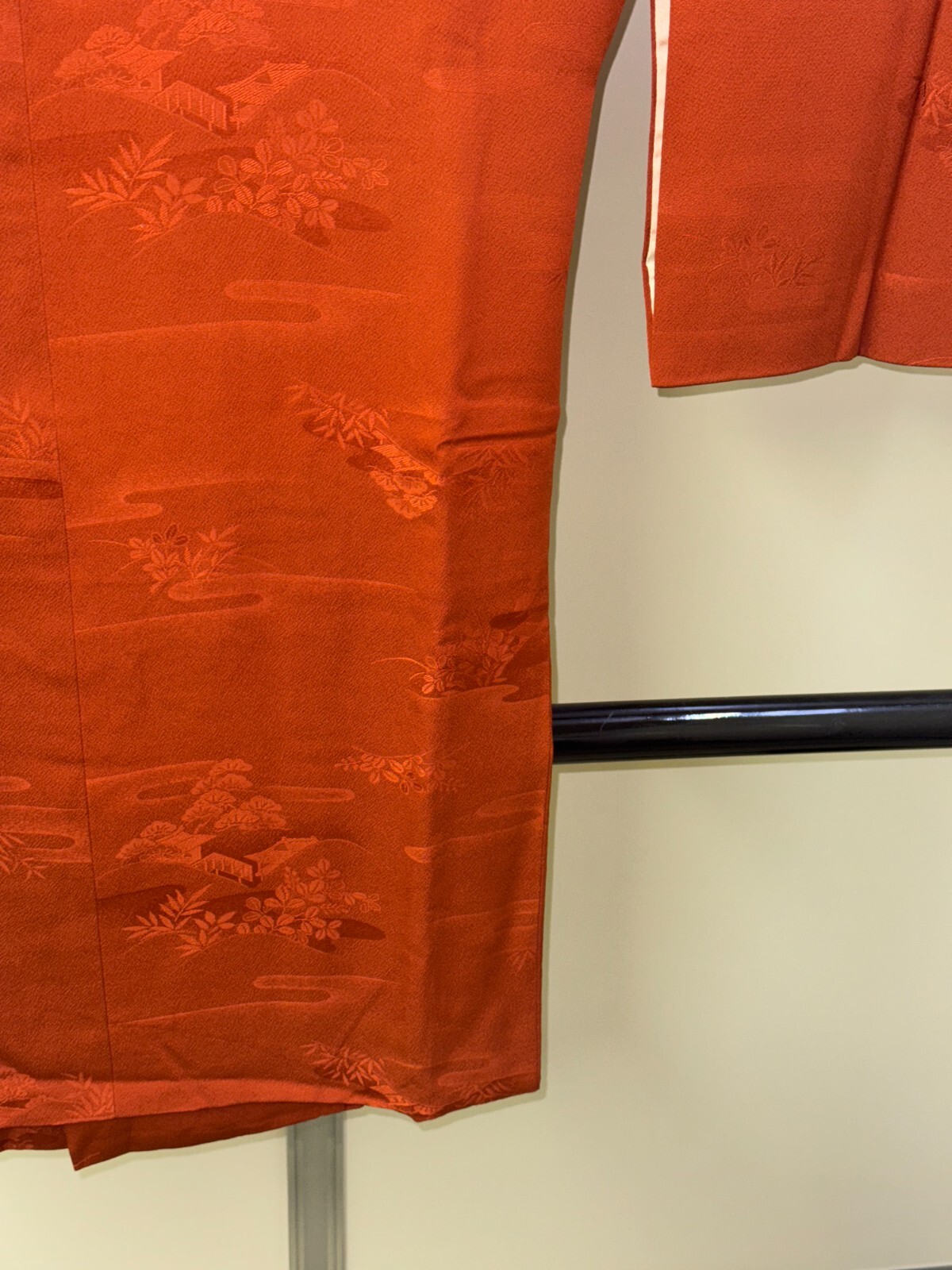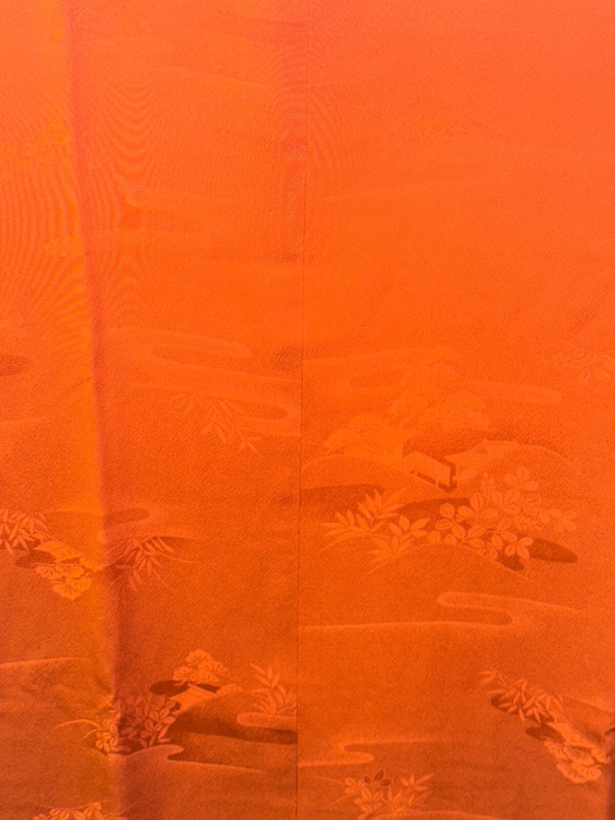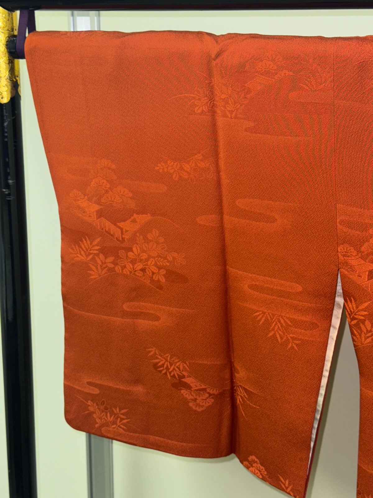 как выглядит Japanese Vintage Kimono Michiyuki coat Jacket Silk Brown Orange Height 39.37in фото
