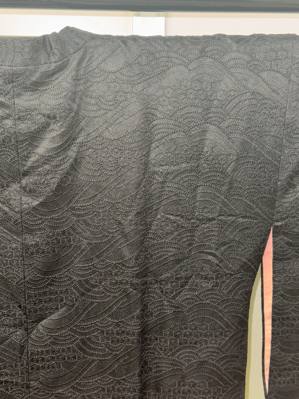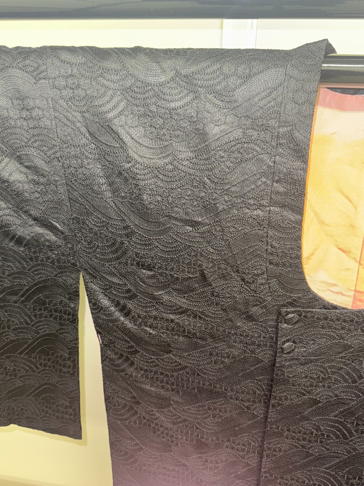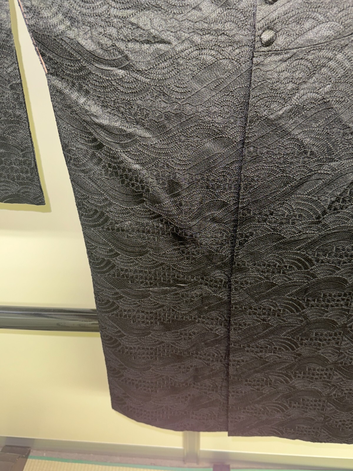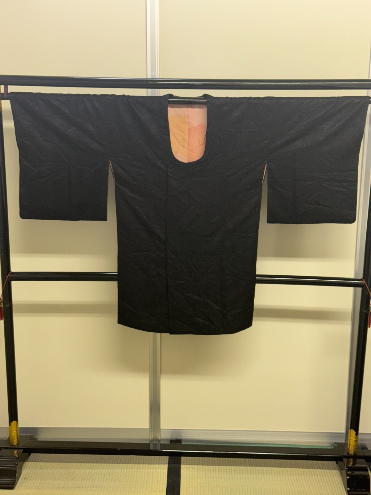 как выглядит Japanese Vintage Kimono Michiyuki coat Jacket polyester black Height 37in фото
