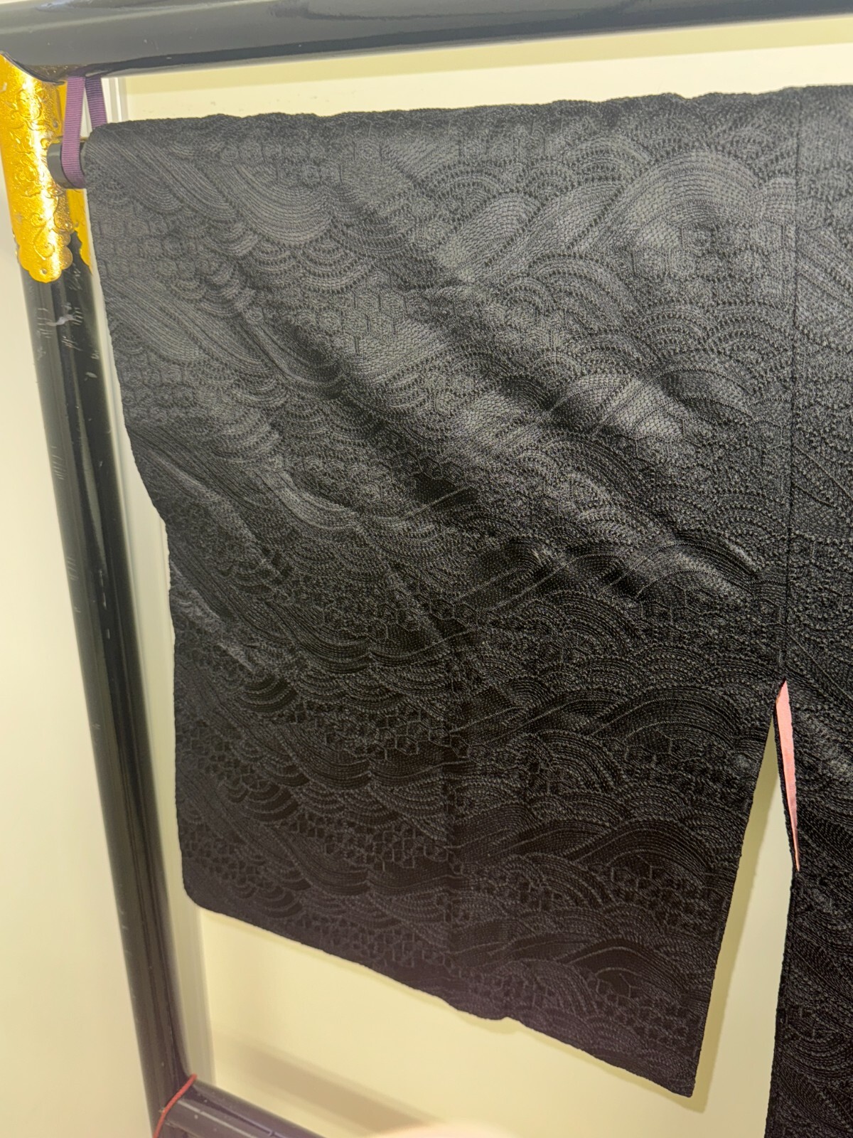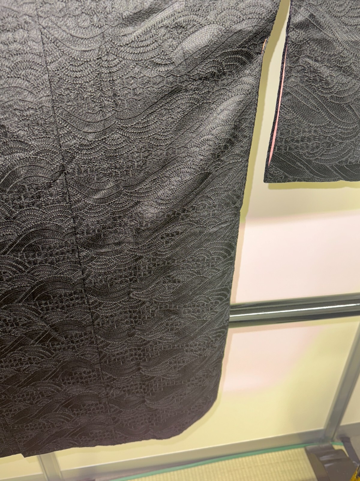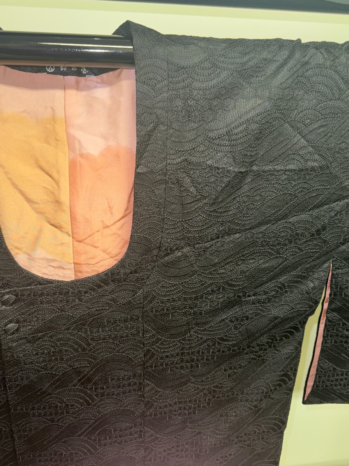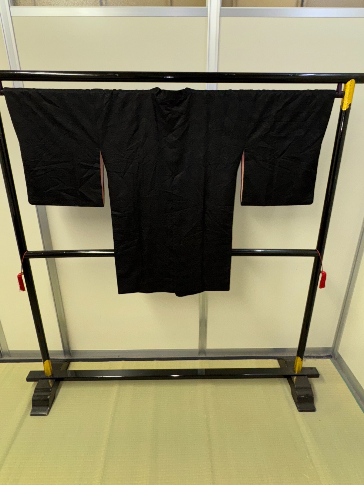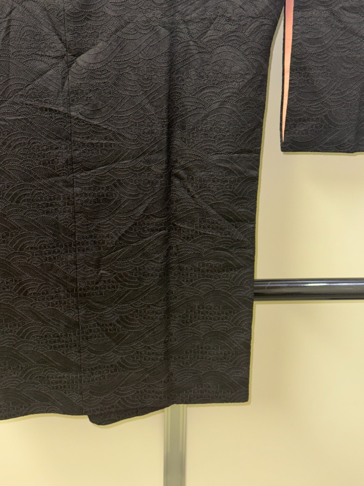 как выглядит Japanese Vintage Kimono Michiyuki coat Jacket polyester black Height 37in фото