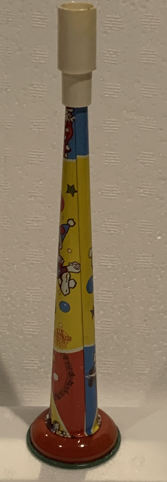 VINTAGE US METAL TOY MFG CO 1940s NEW YEARS EVE PARTY TIN NOISEMAKER HORN