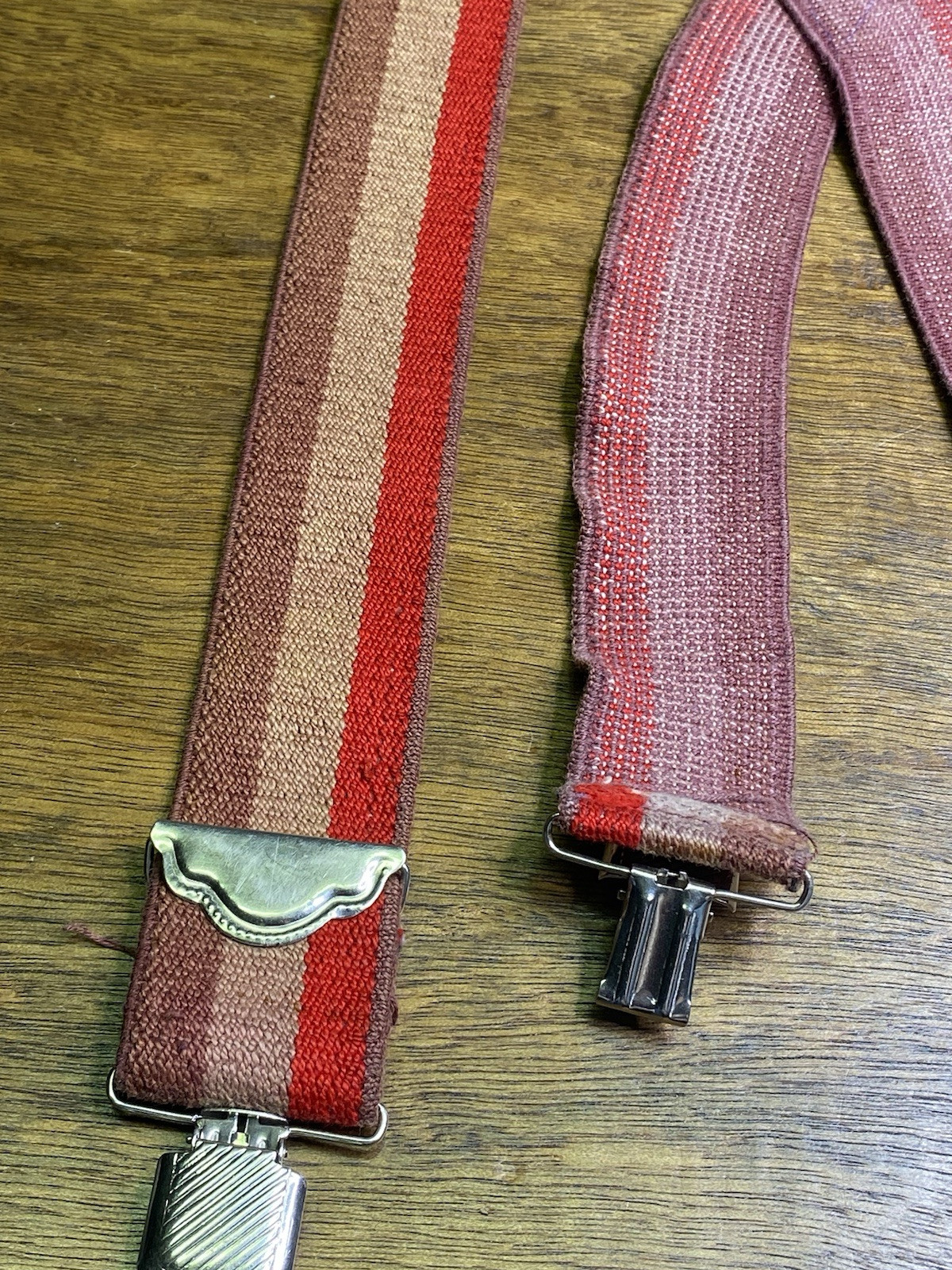 Vintage Suspenders Red Beige Thick Stripe Clip On Wide Trouser Pants Braces