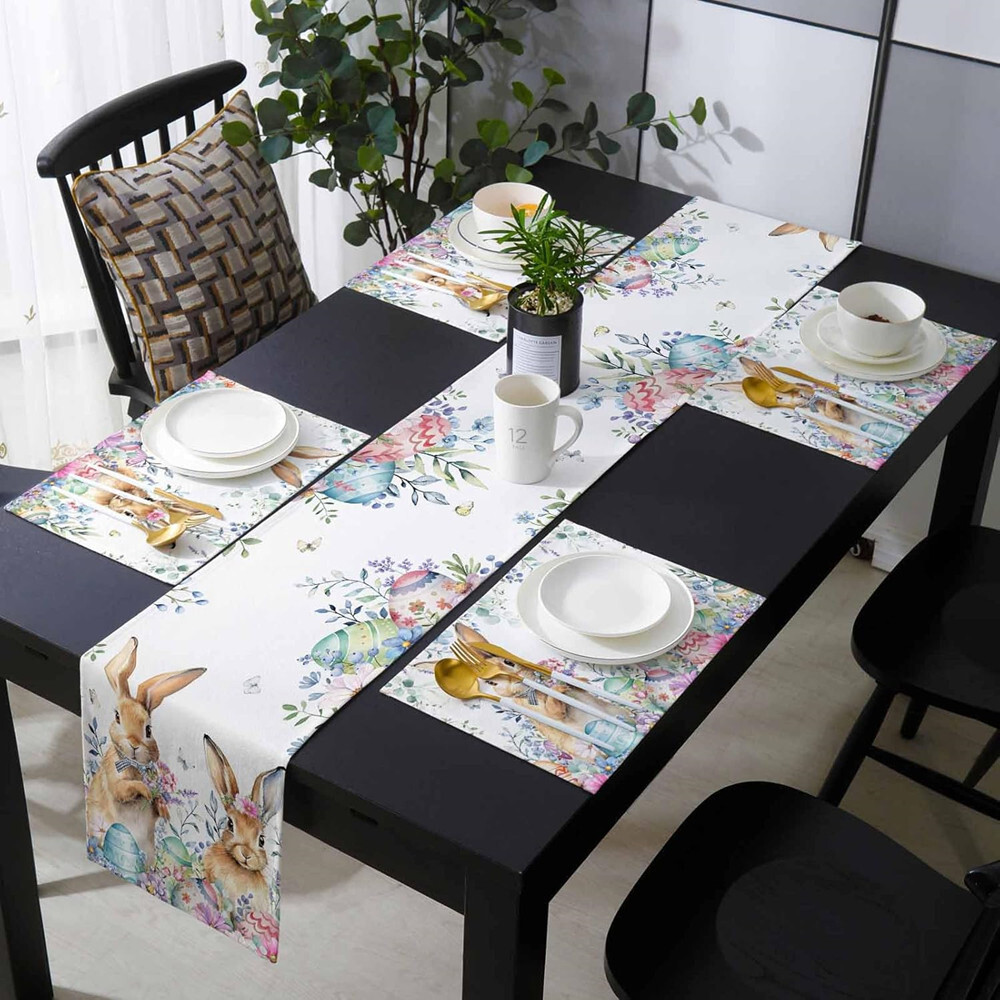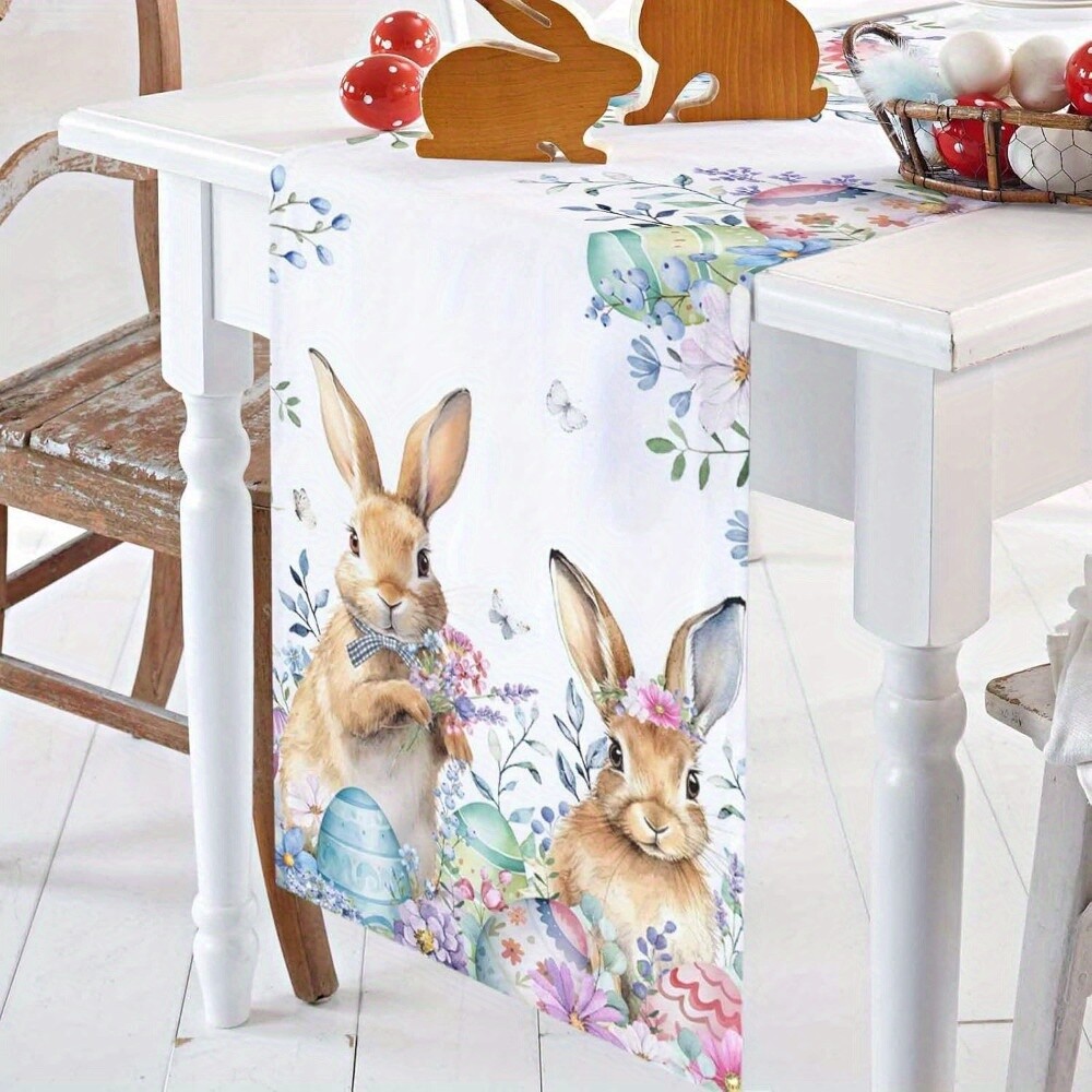 1 PC Easter Table Flag Bunny Eggs Long Eucalyptus Leaf Print Table Runner