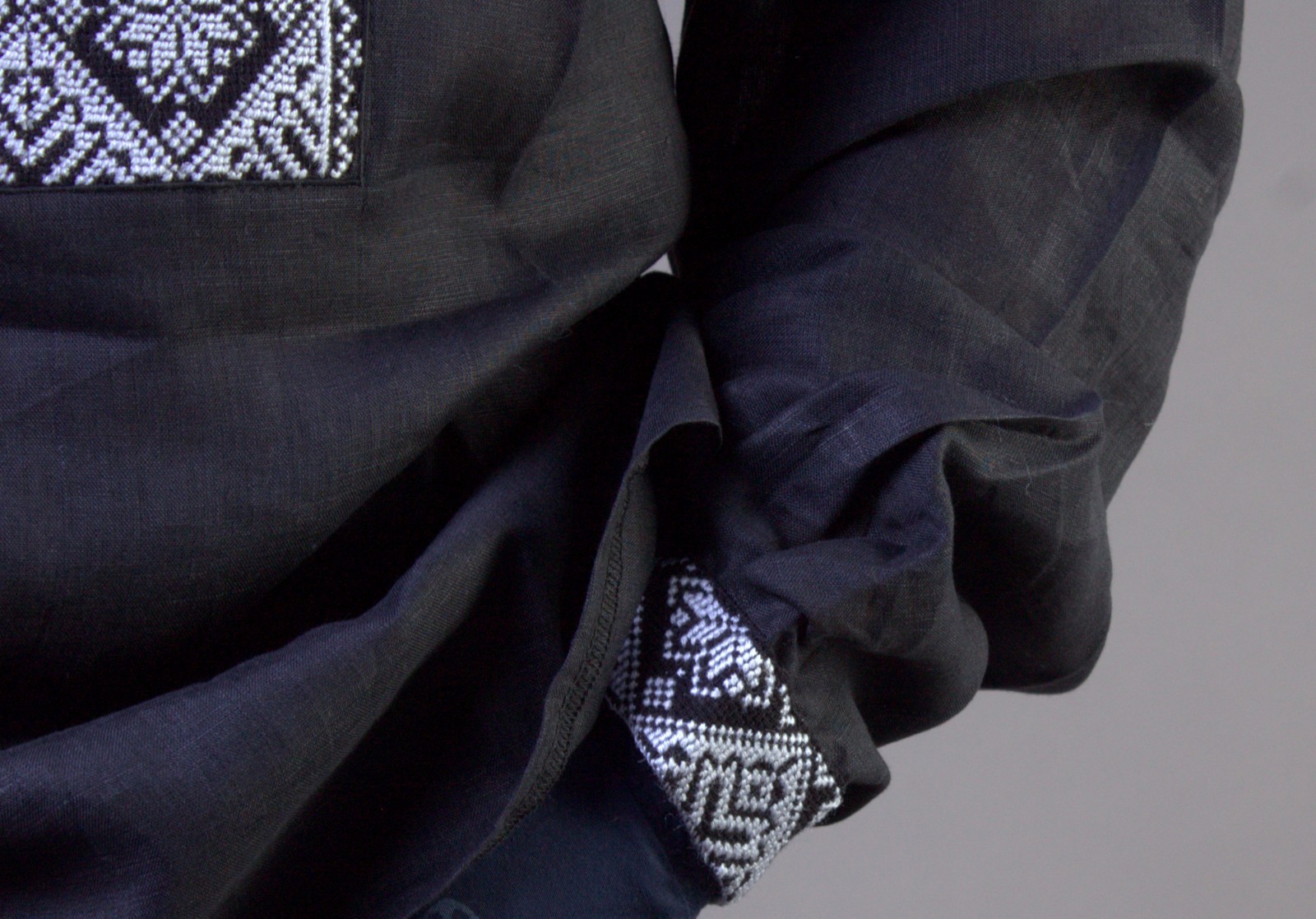 как выглядит VYSHYVANKA mens Black White Embroidery Linen SHIRT S-4XL sorochka ukrainian фото